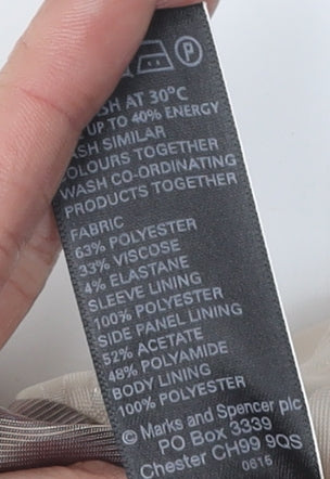 - Material Breakdown: 63% Polyester 34% Viscose 3% Elastane