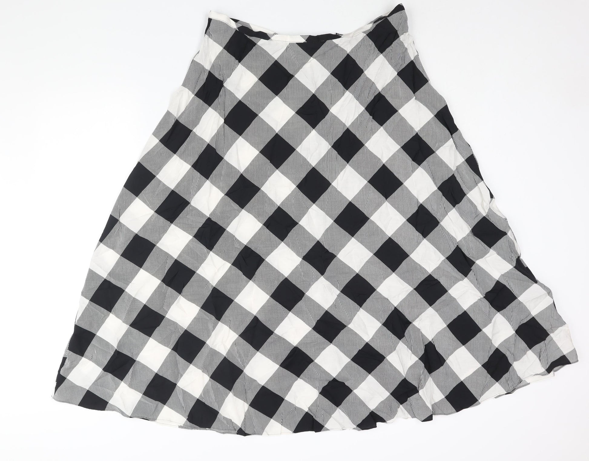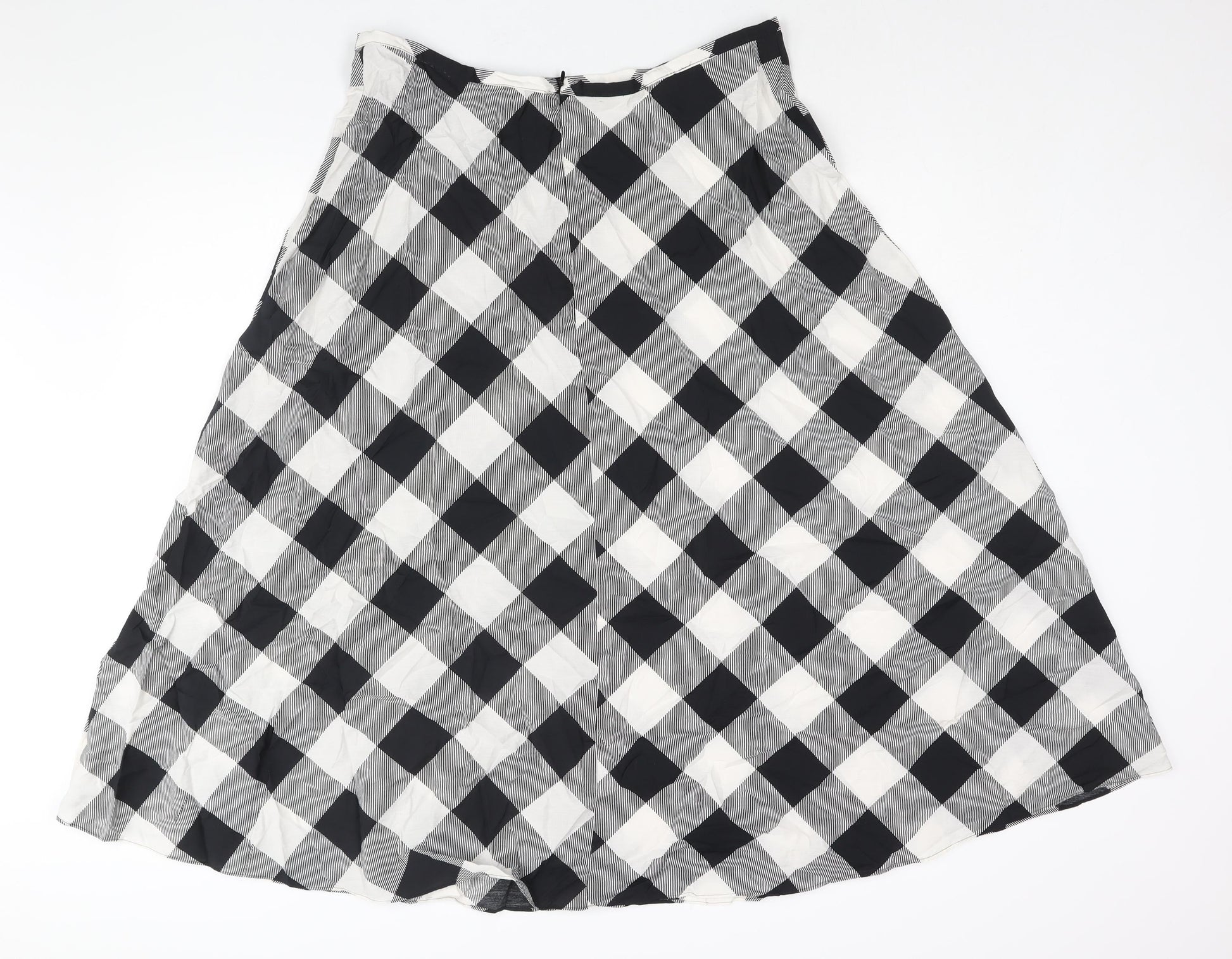 Marks and Spencer Womens Black Check Polyester A-Line Skirt Size 18 Zip