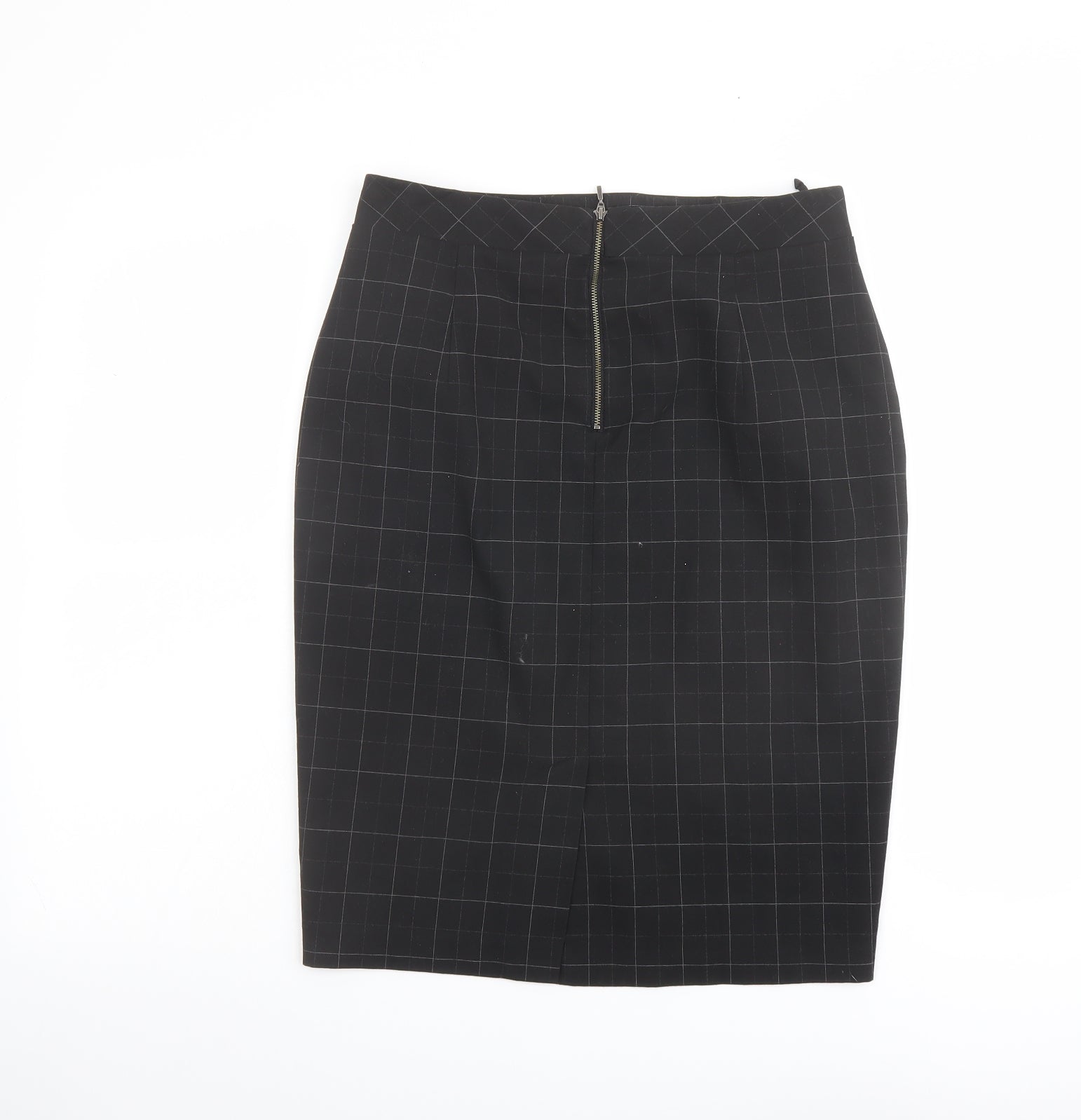 Marks and Spencer Womens Black Check Polyester Straight & Pencil Skirt Size 10 Zip