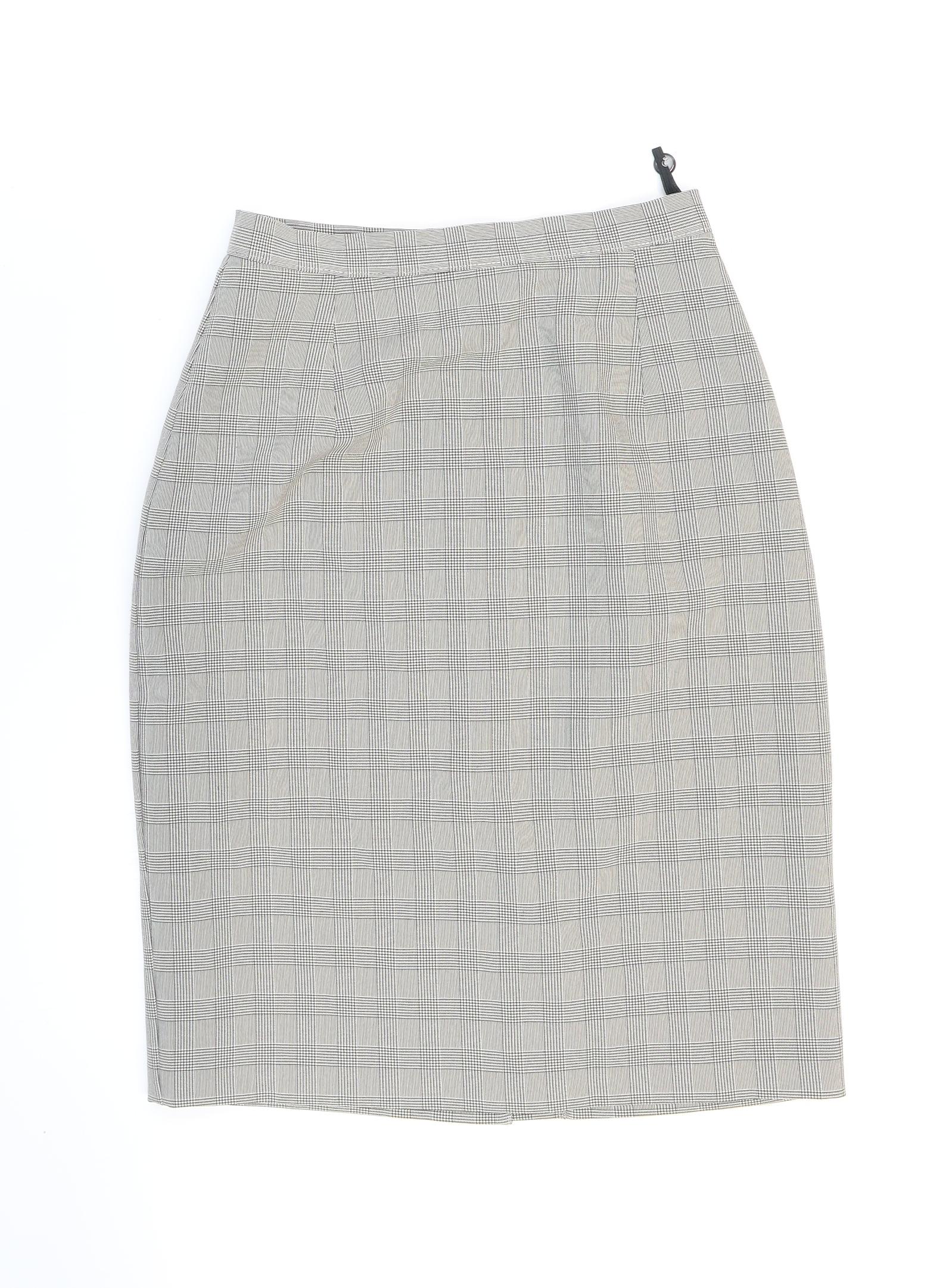 Marks and Spencer Womens Black Check Polyester Straight & Pencil Skirt Size 10 Zip - Formal wear