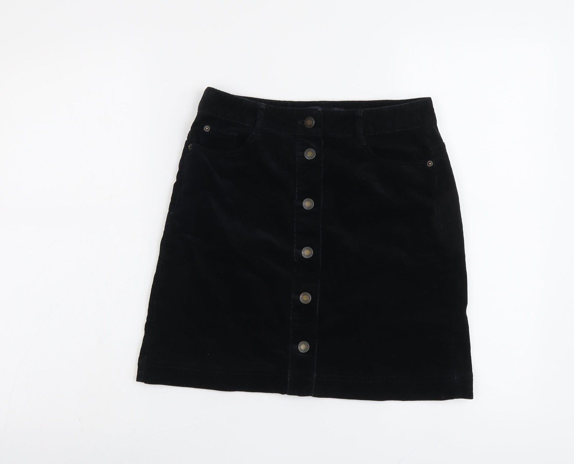 Marks and Spencer Womens Black Cotton A-Line Skirt Size 8 Button