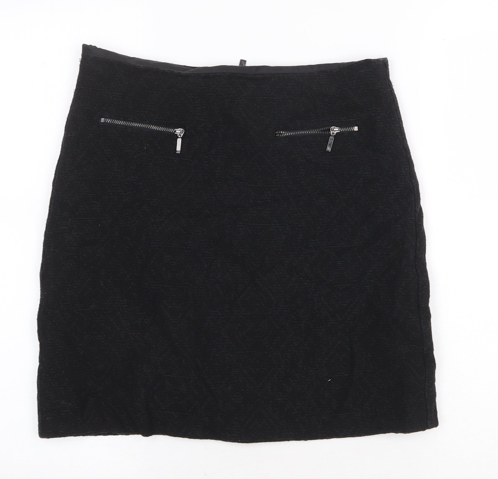 Marks and Spencer Womens Black Cotton Straight & Pencil Skirt Size 8 Zip