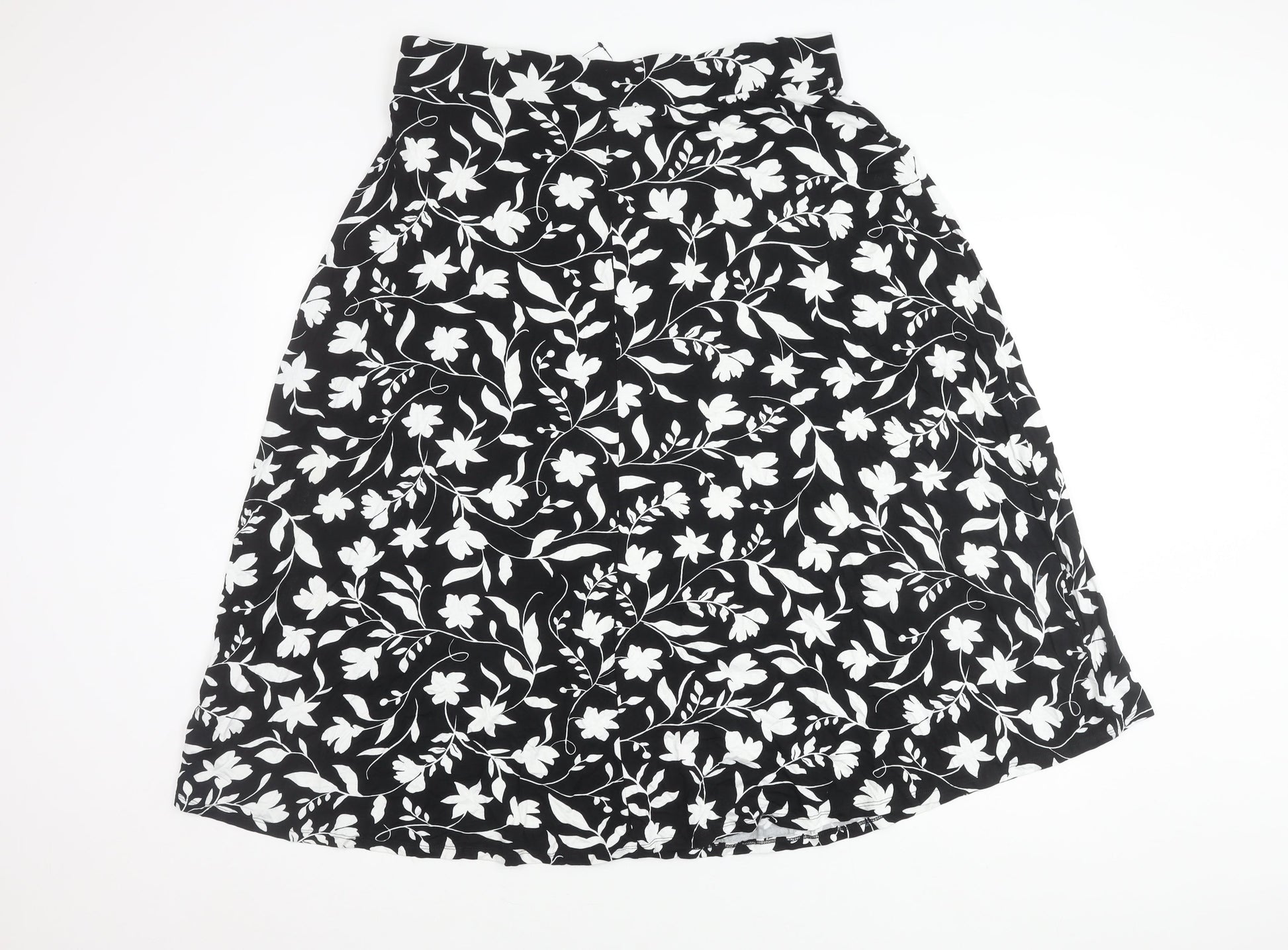 Marks and Spencer Women's Black Floral A-Line Skirt Size 18