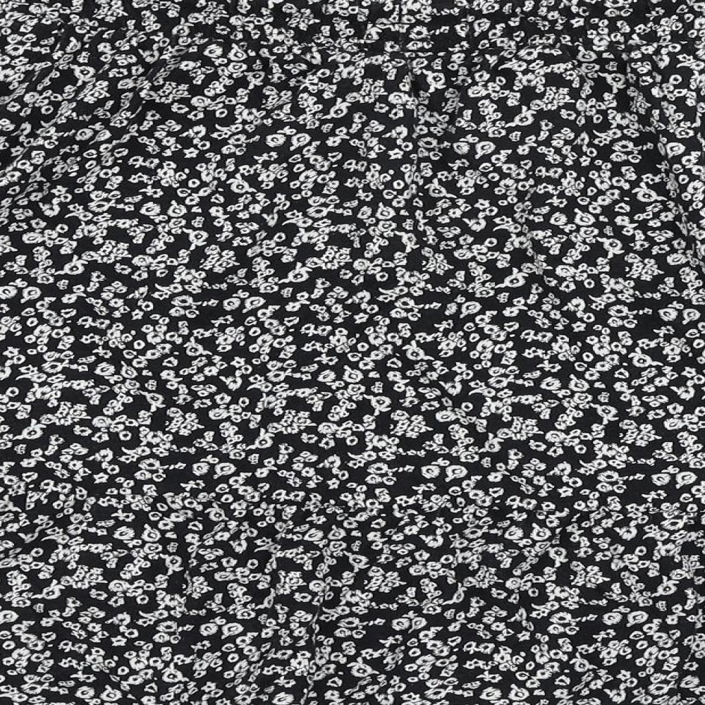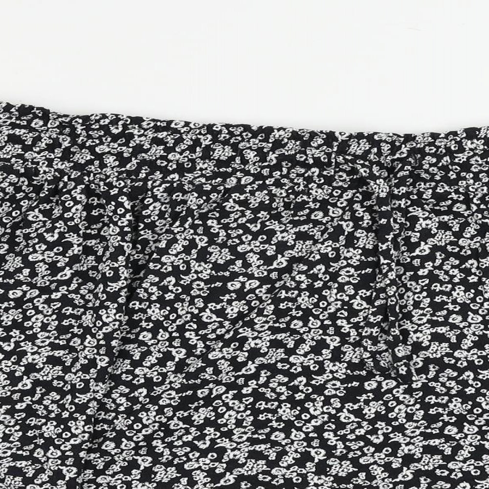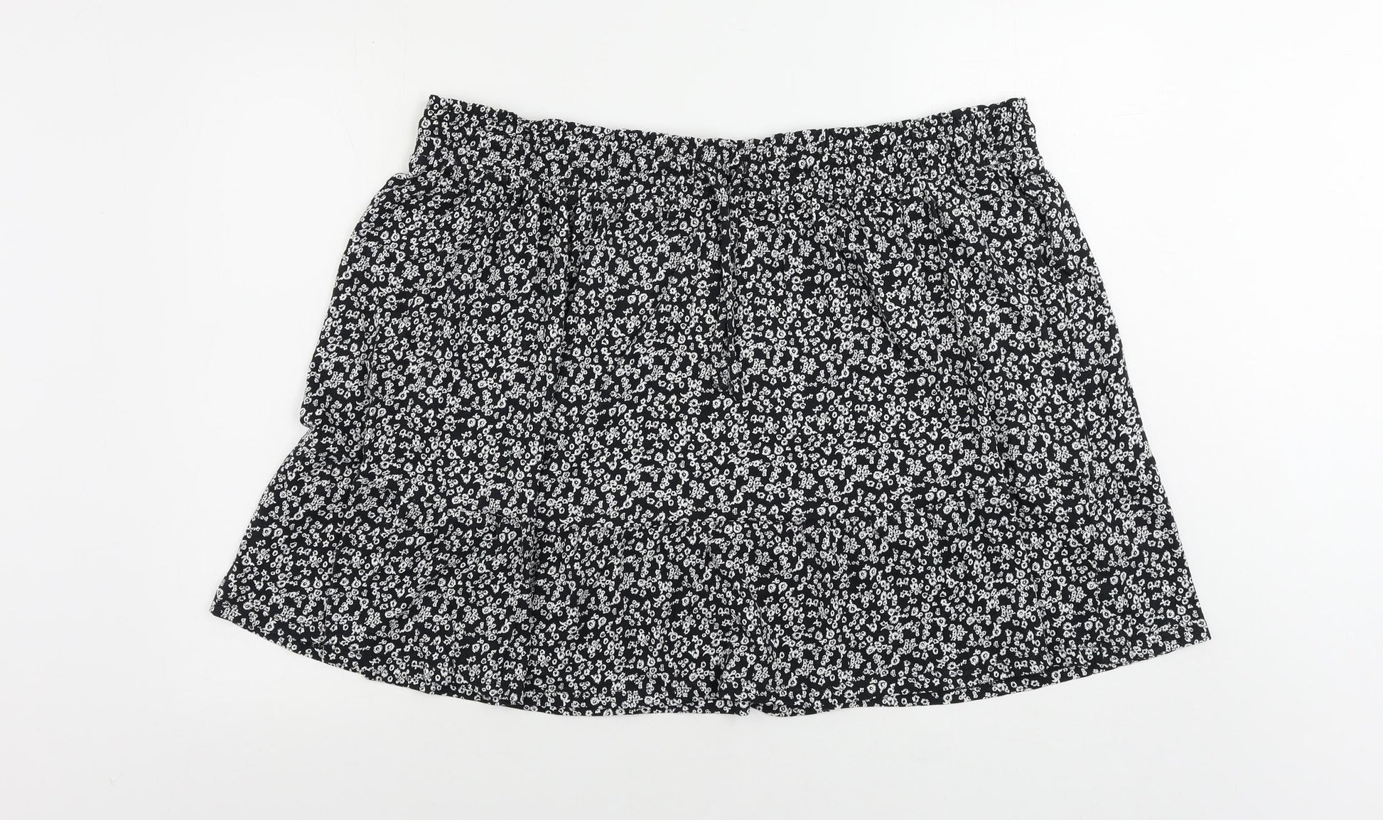 Marks and Spencer Womens Black Floral Cotton Mini Skirt Size 22 Drawstring