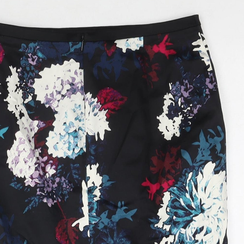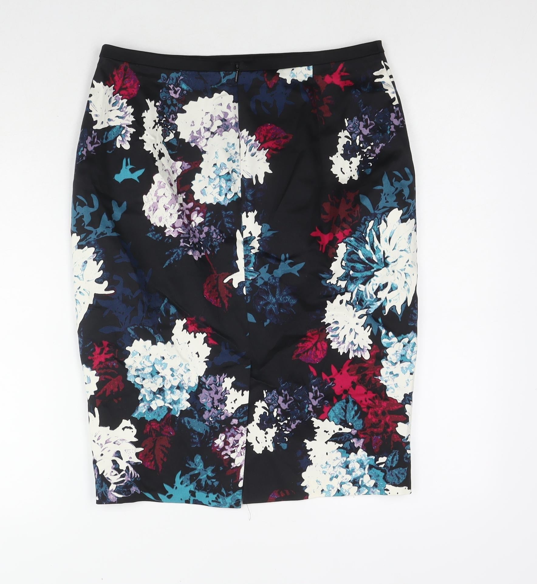 Marks and Spencer Womens Black Floral Cotton Straight & Pencil Skirt Size 10 Zip