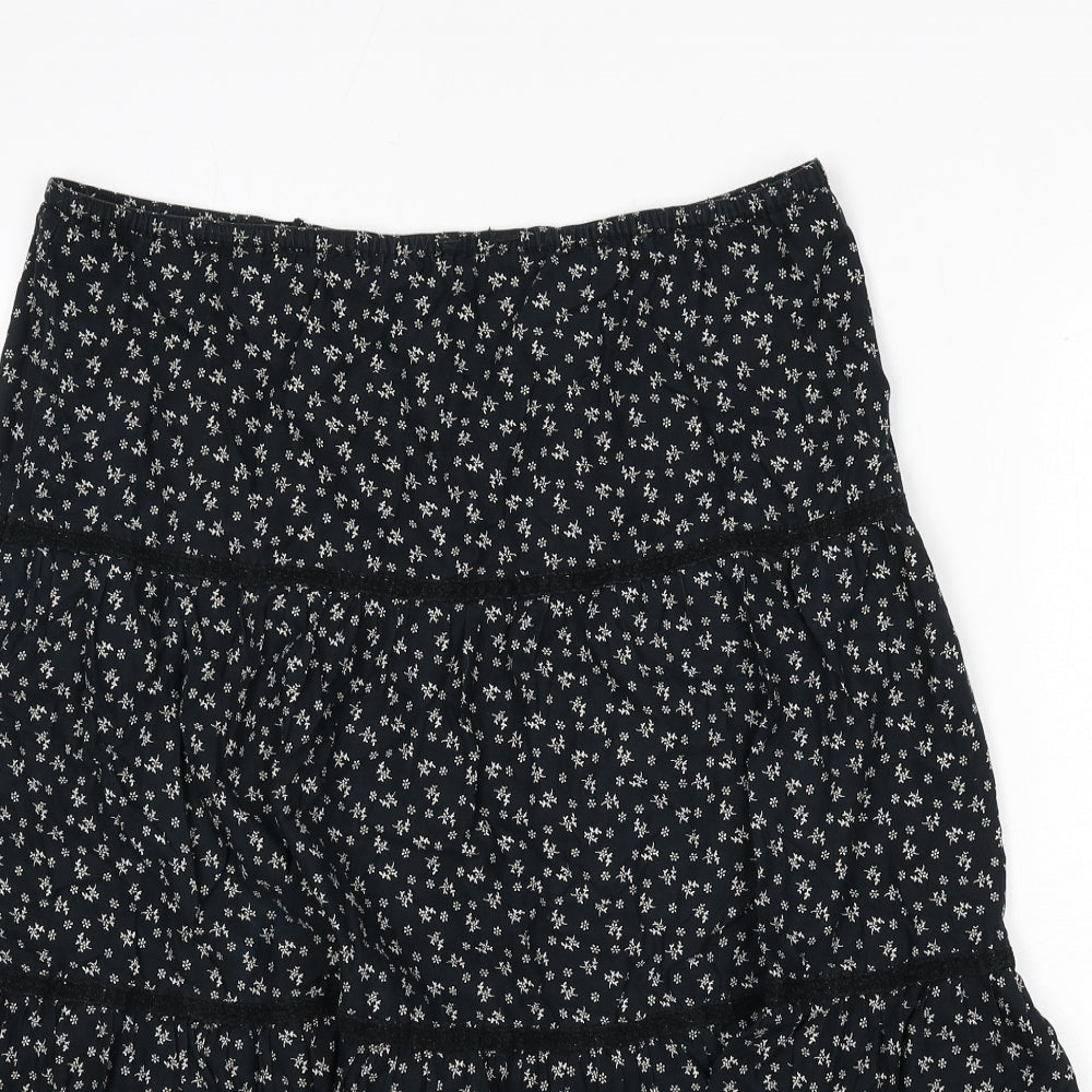 Marks and Spencer Womens Black Floral Polyester Flare Skirt Size 34 in - Lace Detail