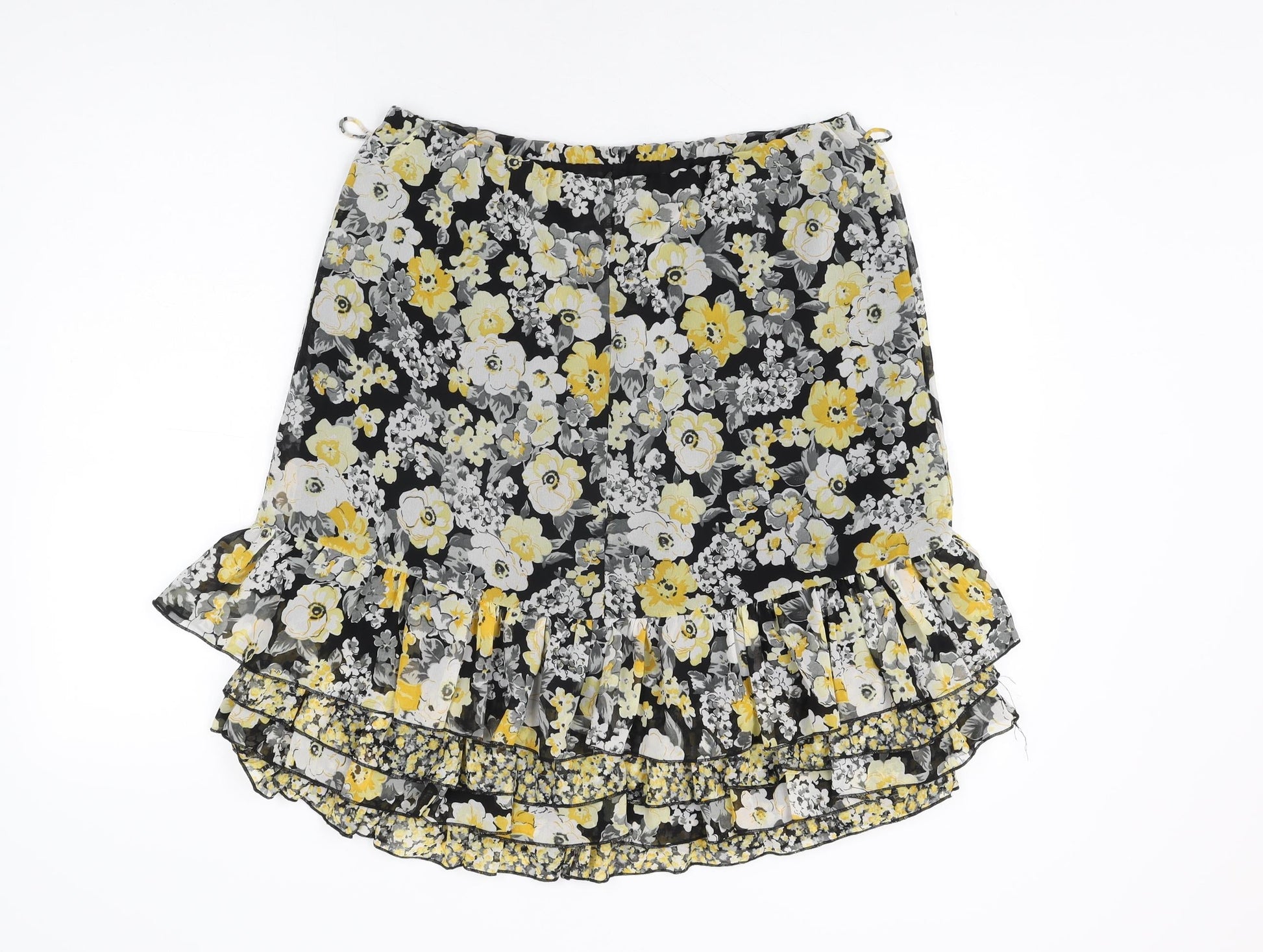 Marks and Spencer Womens Black Floral Polyester Skater Skirt Size 14
