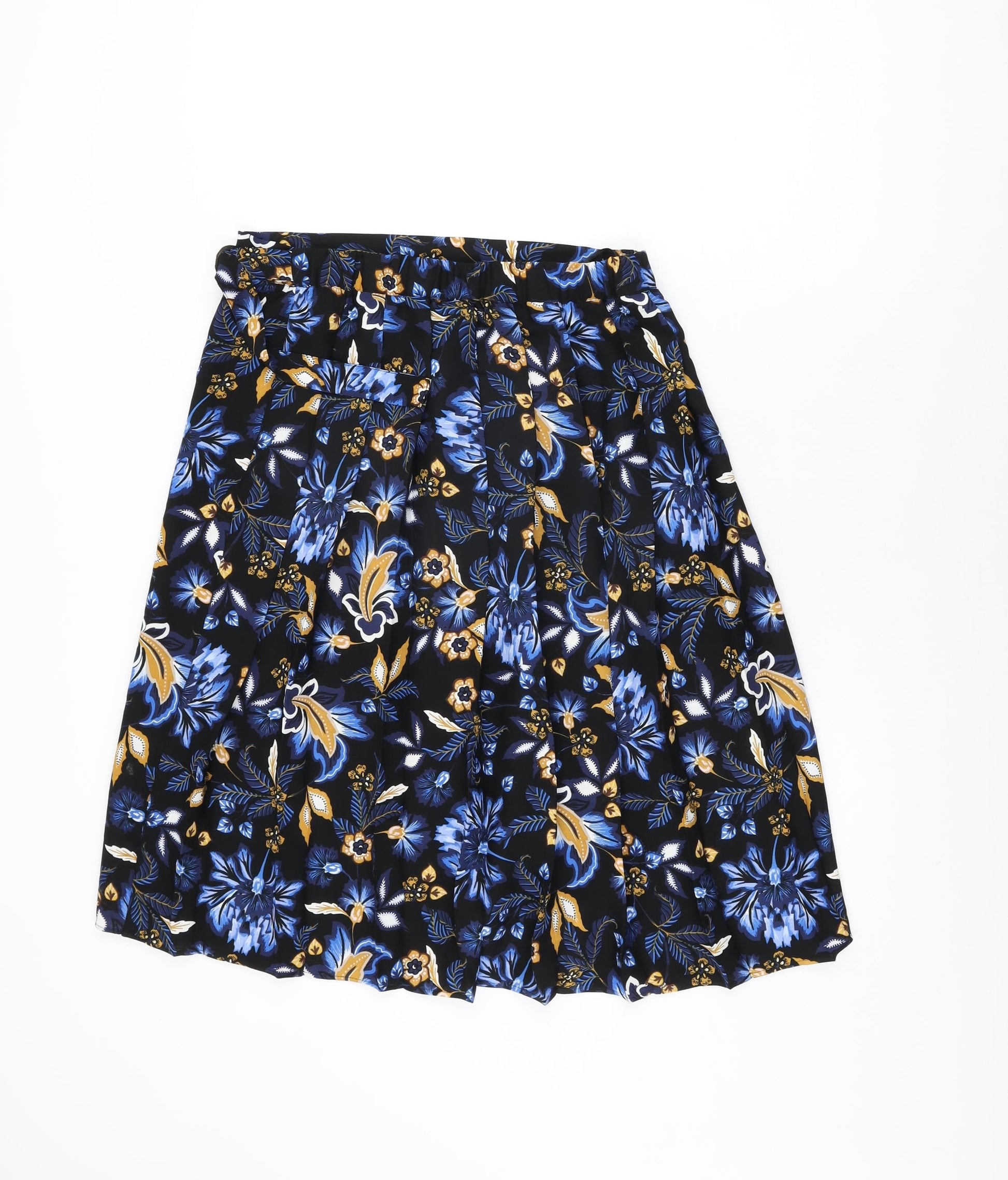 Marks and Spencer Womens Black Floral Polyester Swing Skirt Size 12 Tie