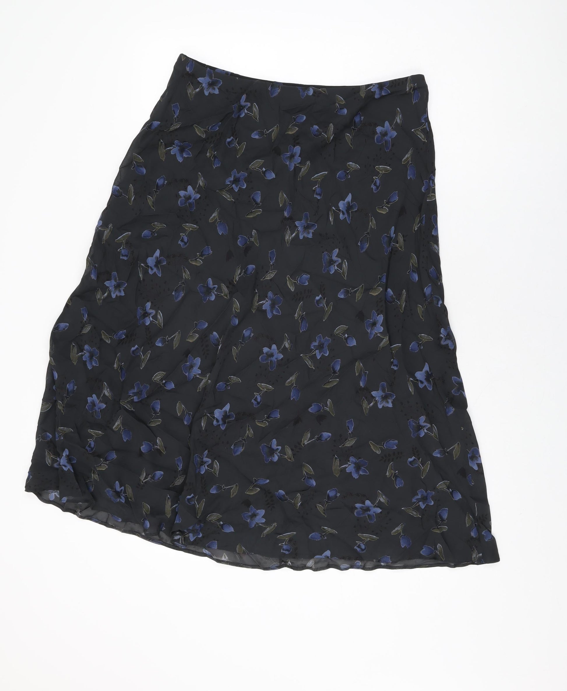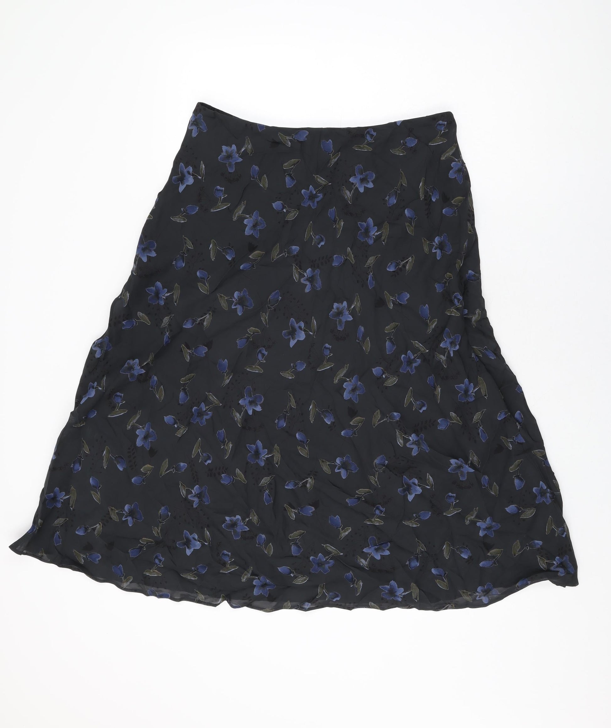 Marks and Spencer Womens Black Floral Viscose Swing Skirt Size 16