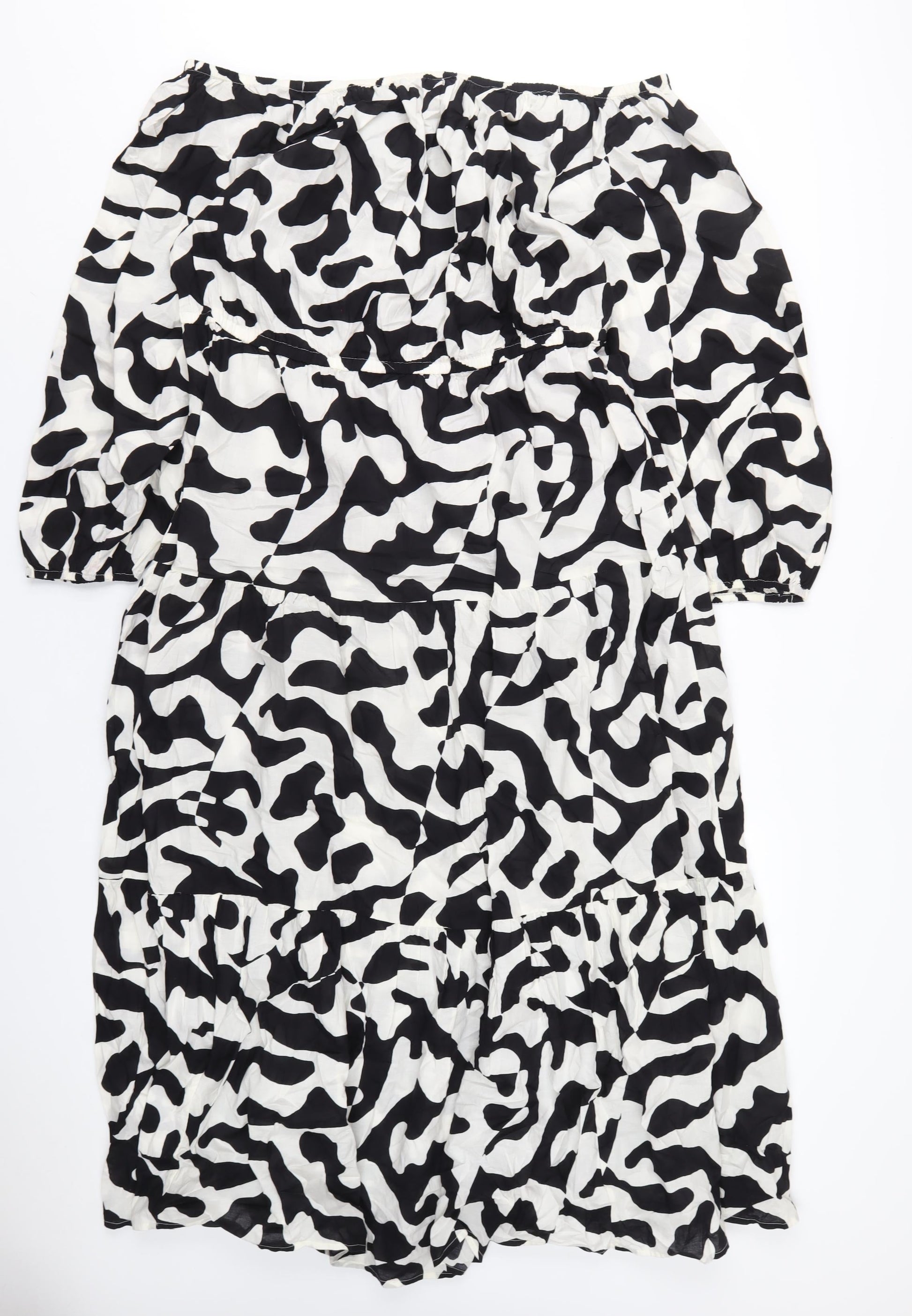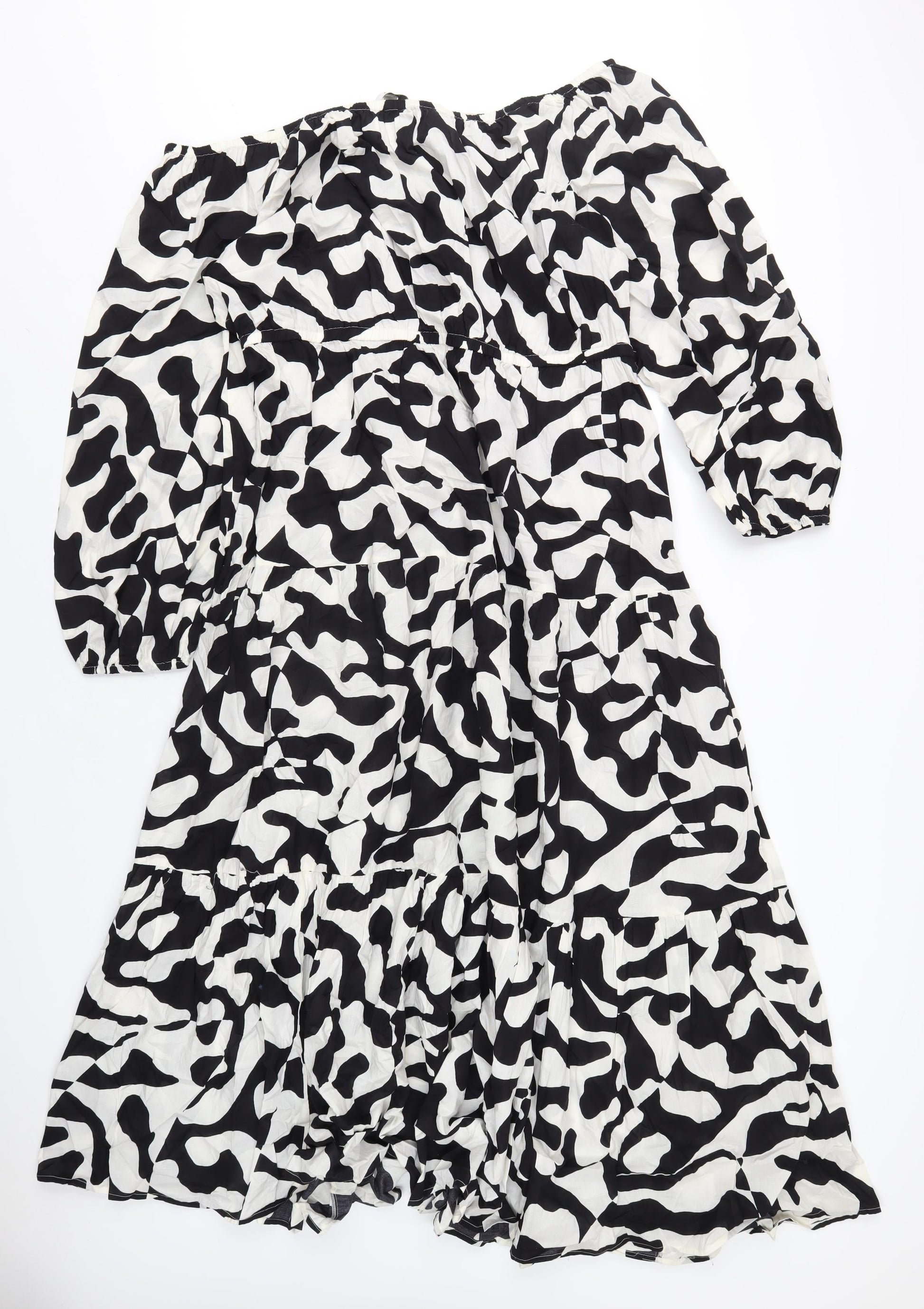 Marks and Spencer Womens Black Geometric Cotton A-Line Size 22 Off the Shoulder Pullover