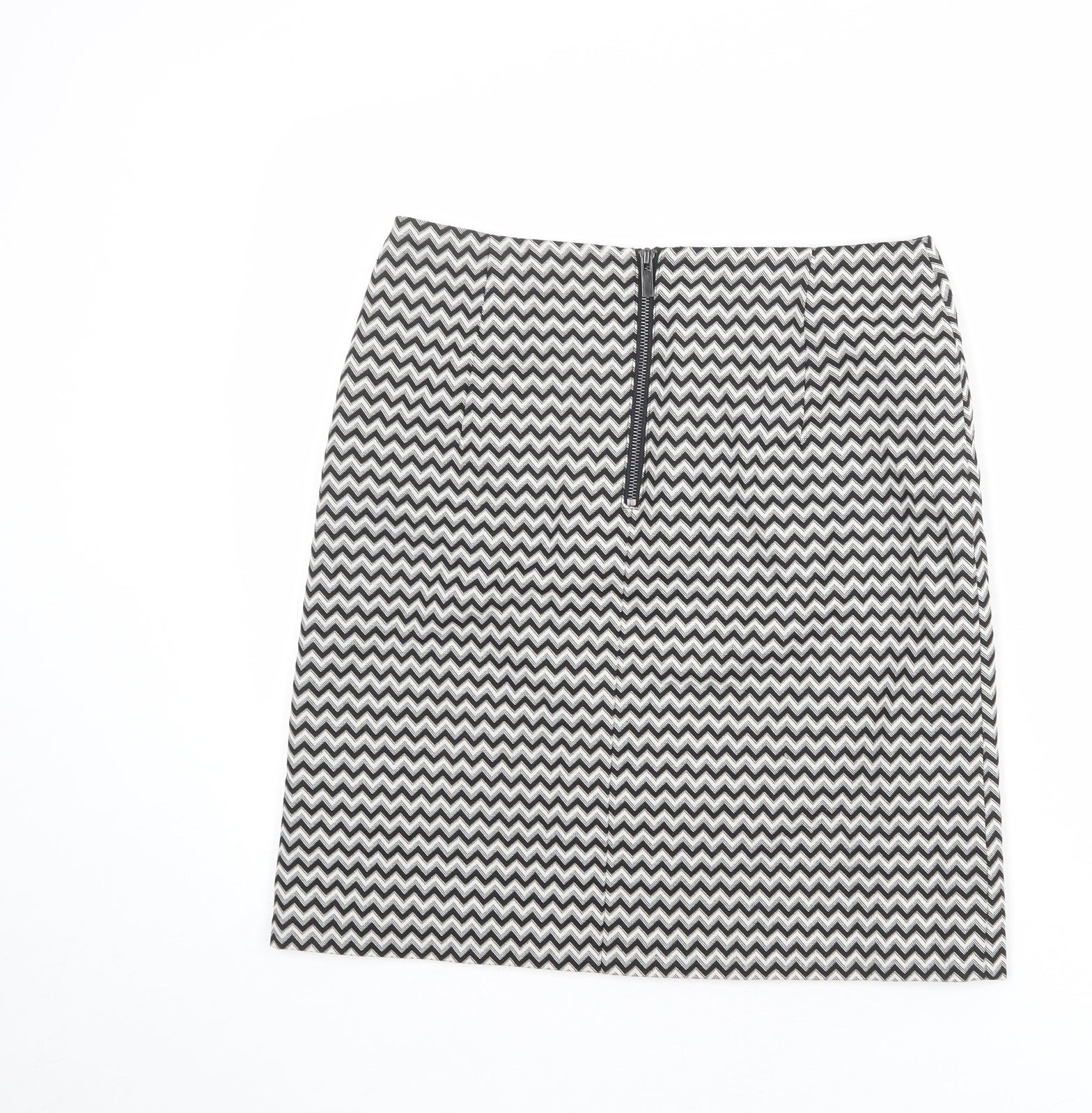 Marks and Spencer Womens Black Geometric Cotton A-Line Skirt Size 10 Zip