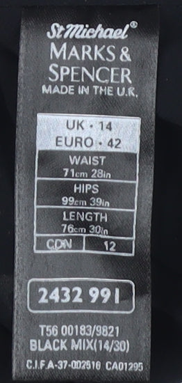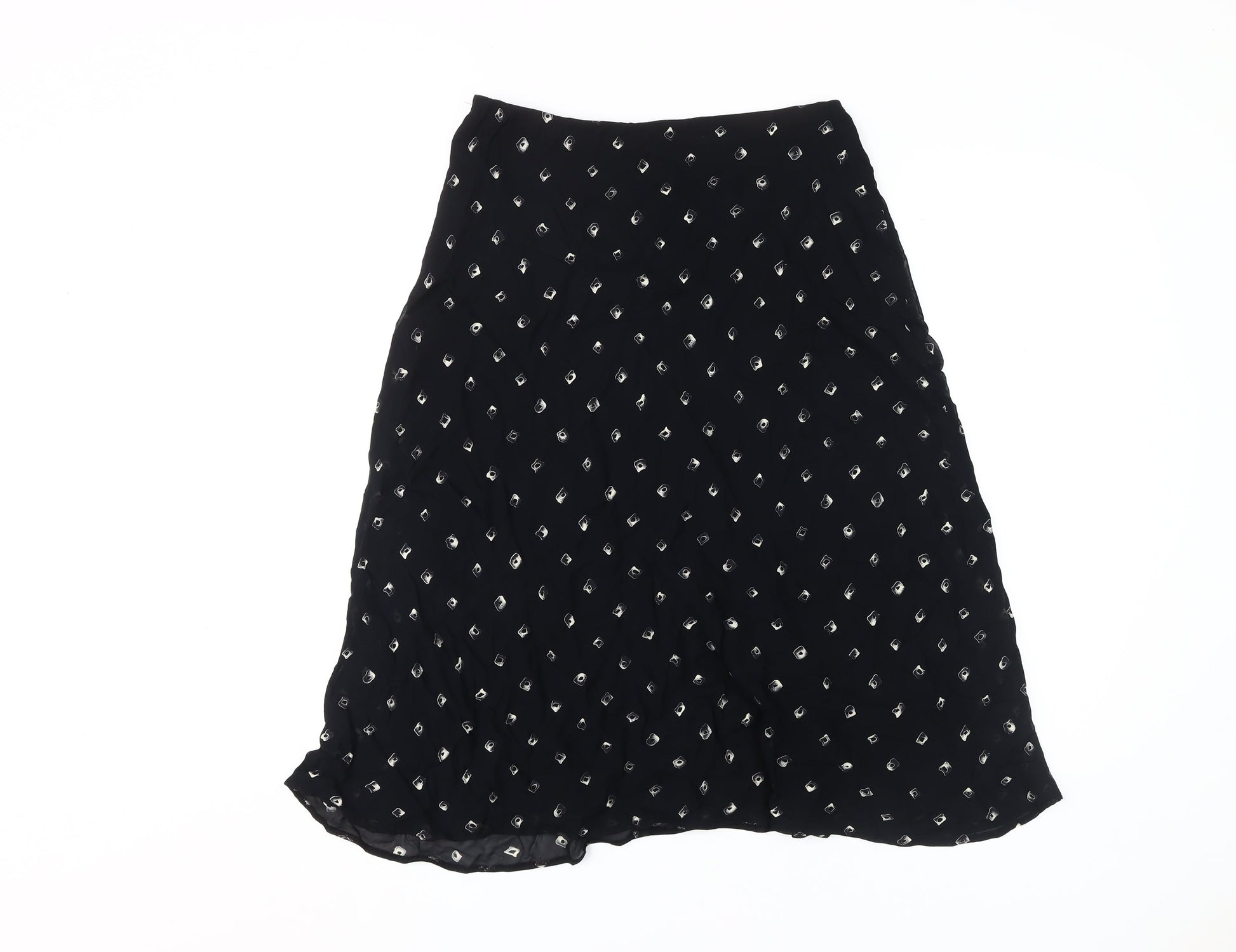 Marks and Spencer Women's Black Geometric Midi Skirt - Size 14