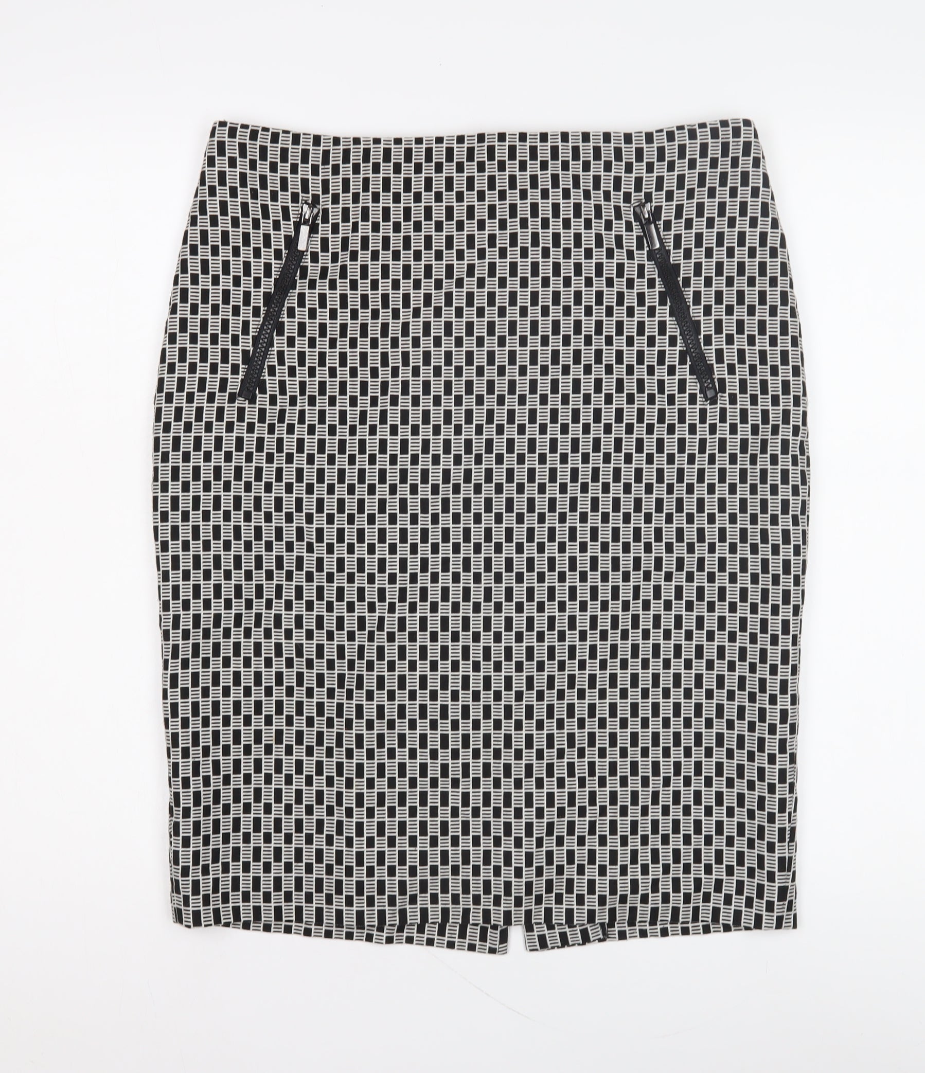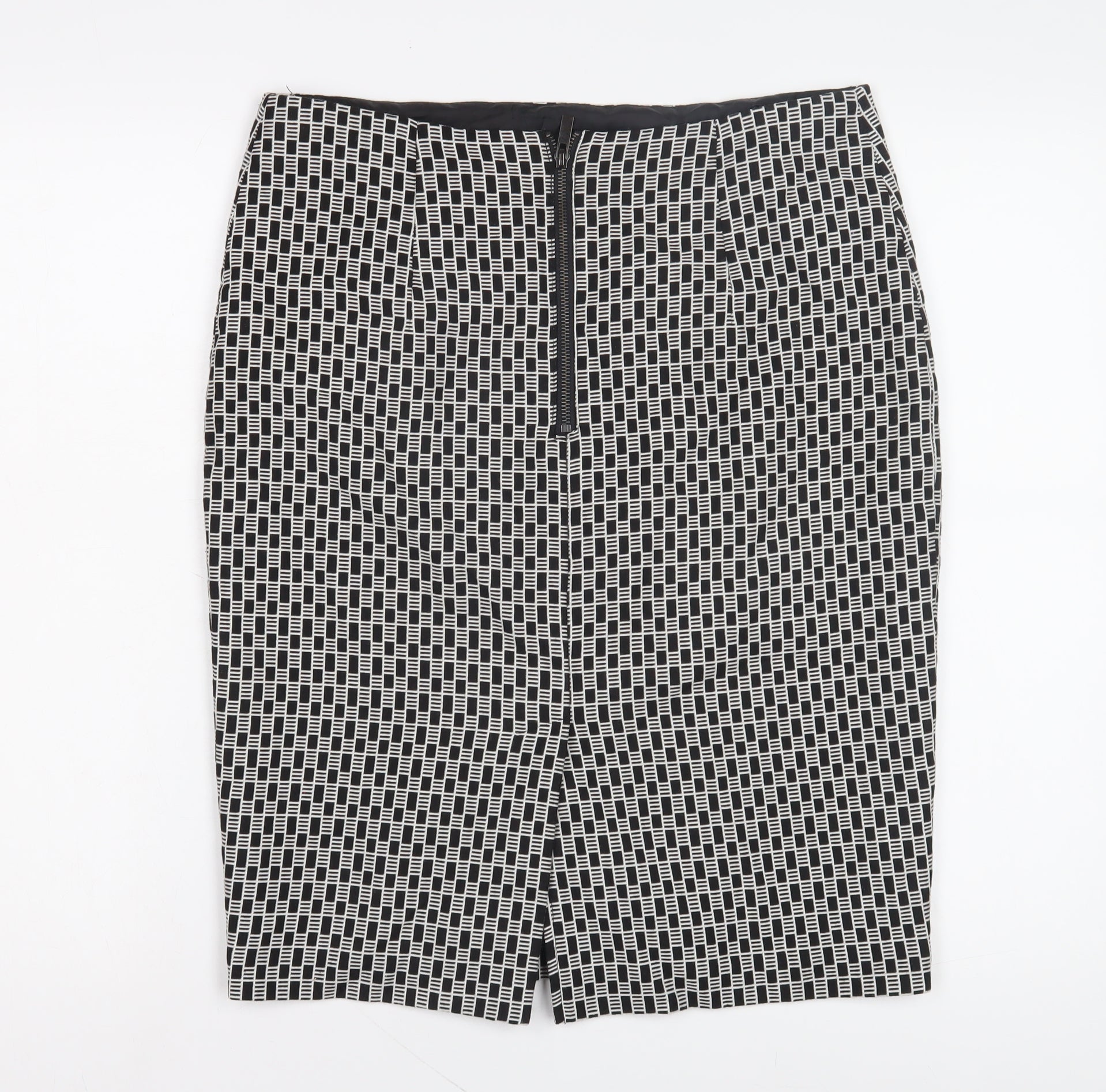 Marks and Spencer Women's Black Geometric Pencil Skirt, Size 12