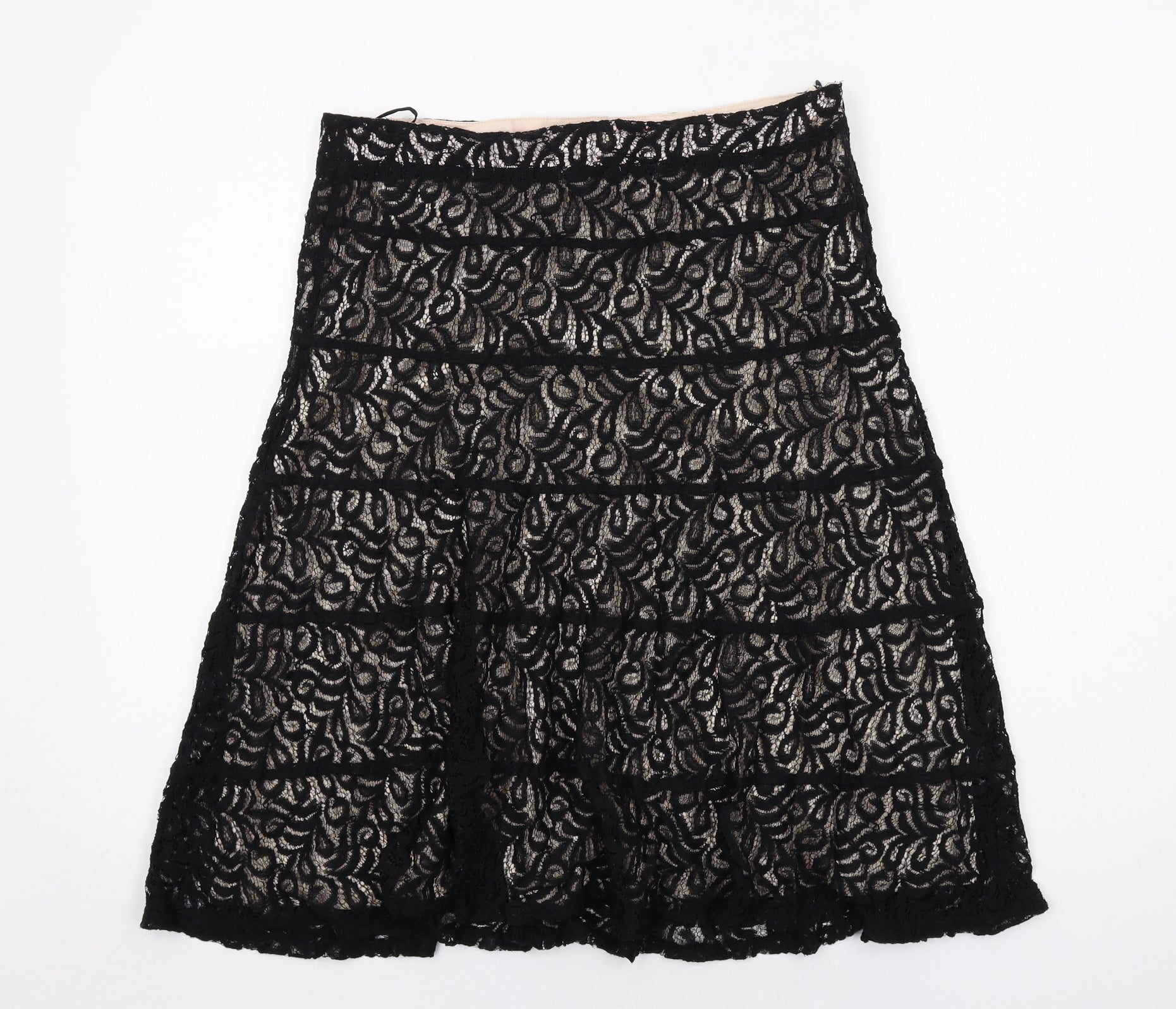Marks and Spencer Womens Black Geometric Polyamide Swing Skirt Size 12 Zip