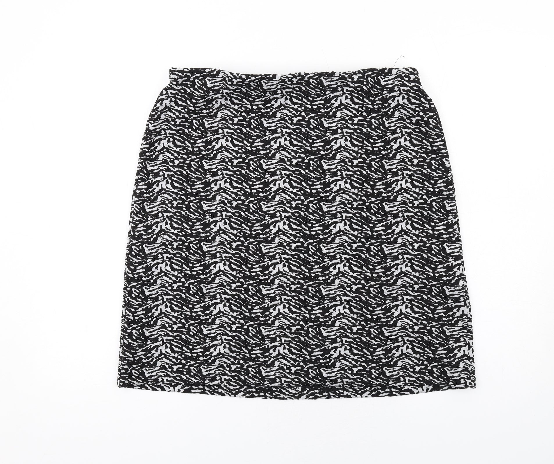 Marks and Spencer Womens Black Geometric Polyester A-Line Skirt Size 14