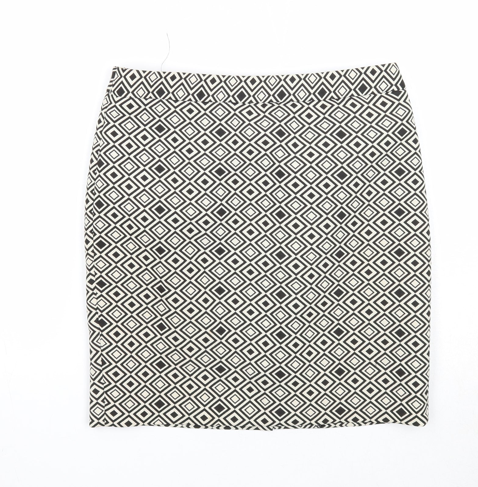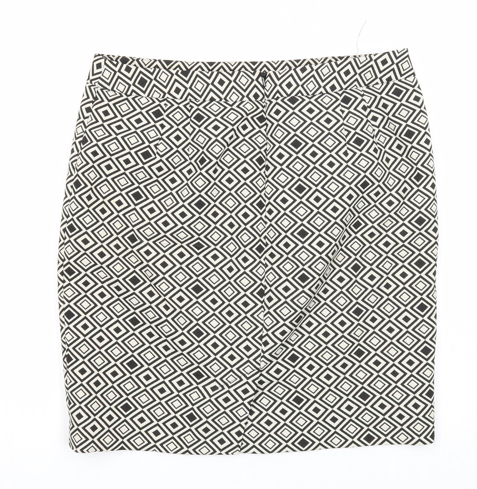 Marks and Spencer Womens Black Geometric Polyester A-Line Skirt Size 8 Zip