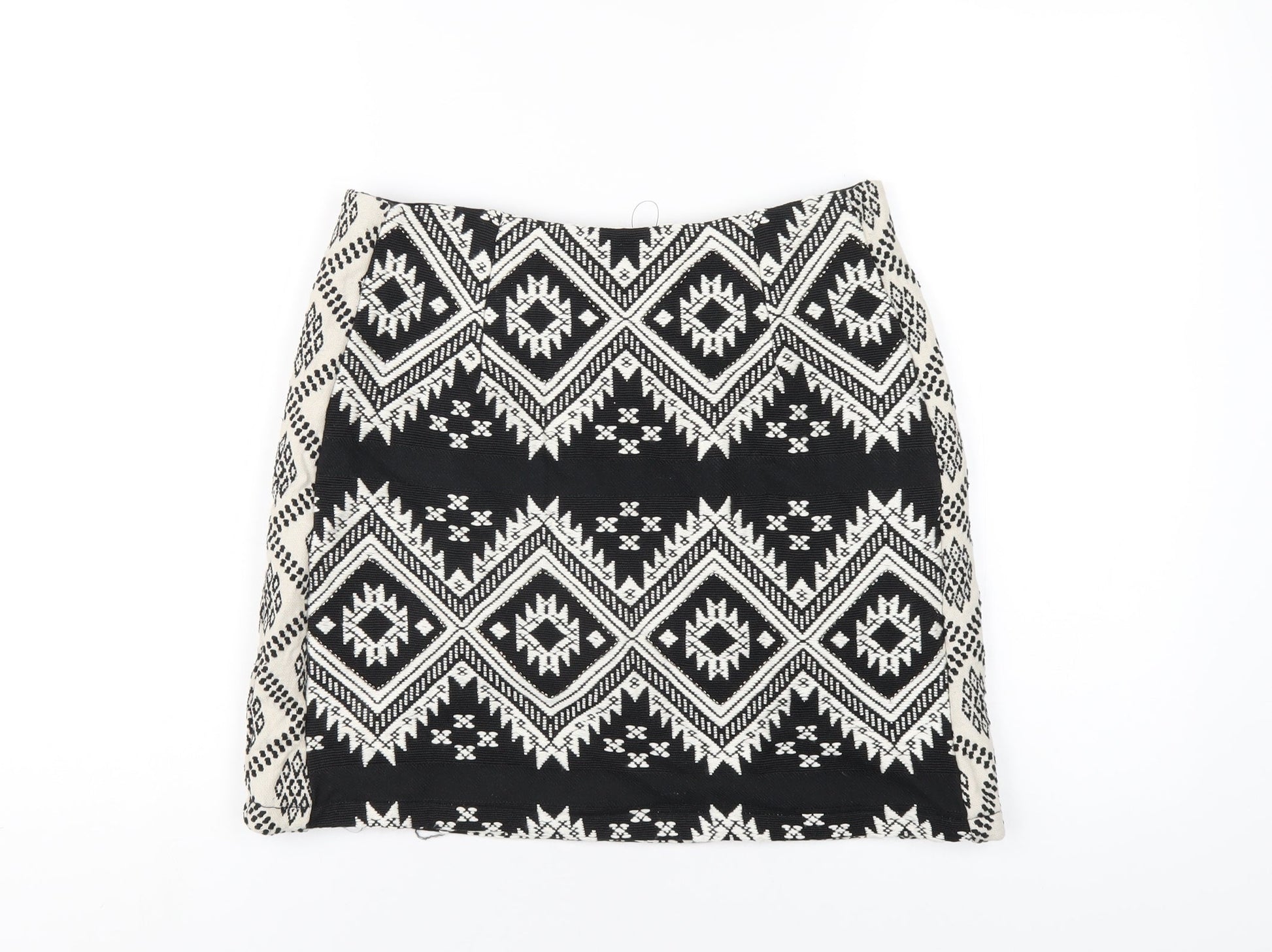 Marks and Spencer Womens Black Geometric Polyester A-Line Skirt Size 8 Zip