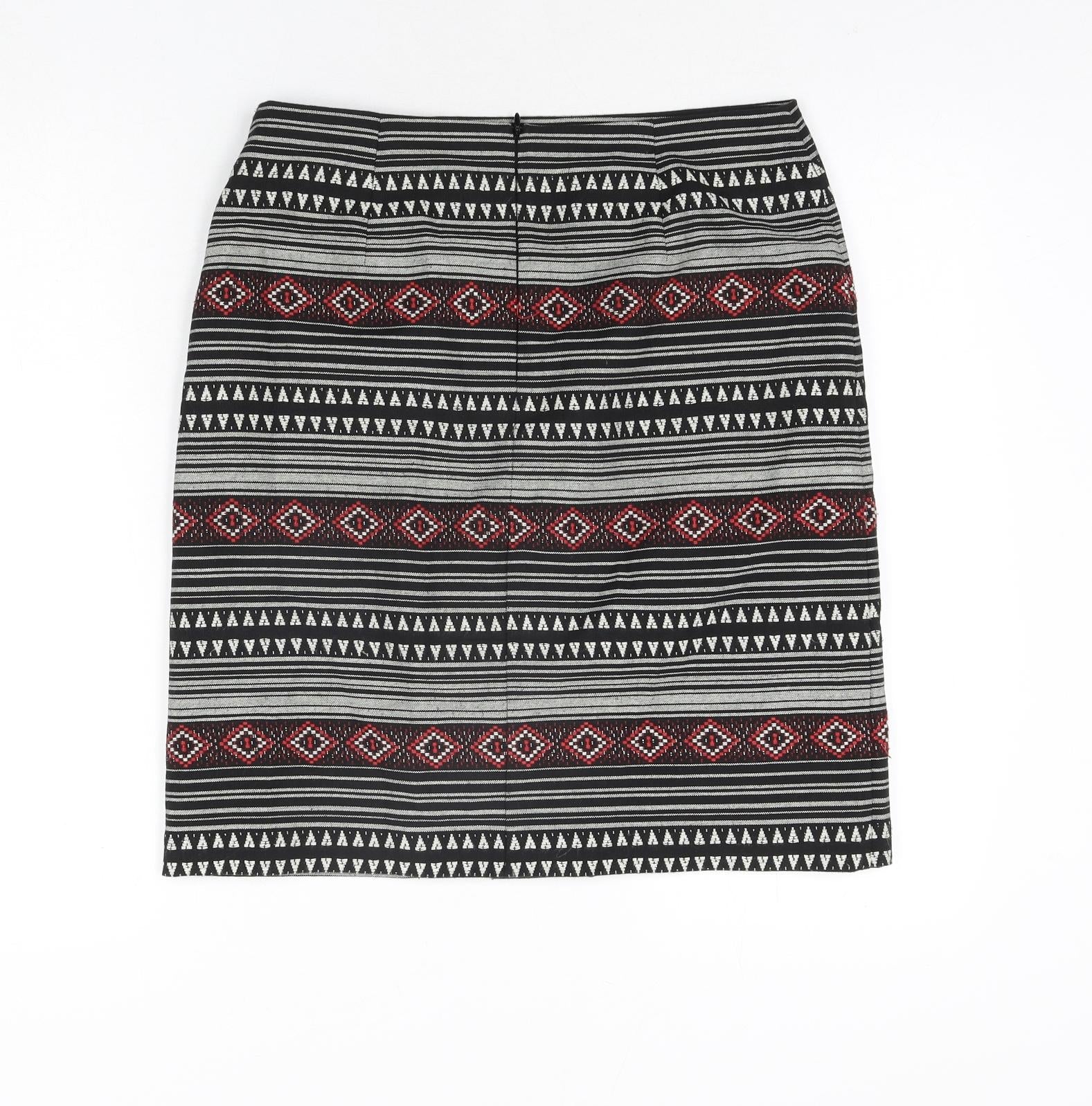 Marks and Spencer Womens Black Geometric Polyester Straight & Pencil Skirt Size 10 Zip - Wrap Style Zip Detail