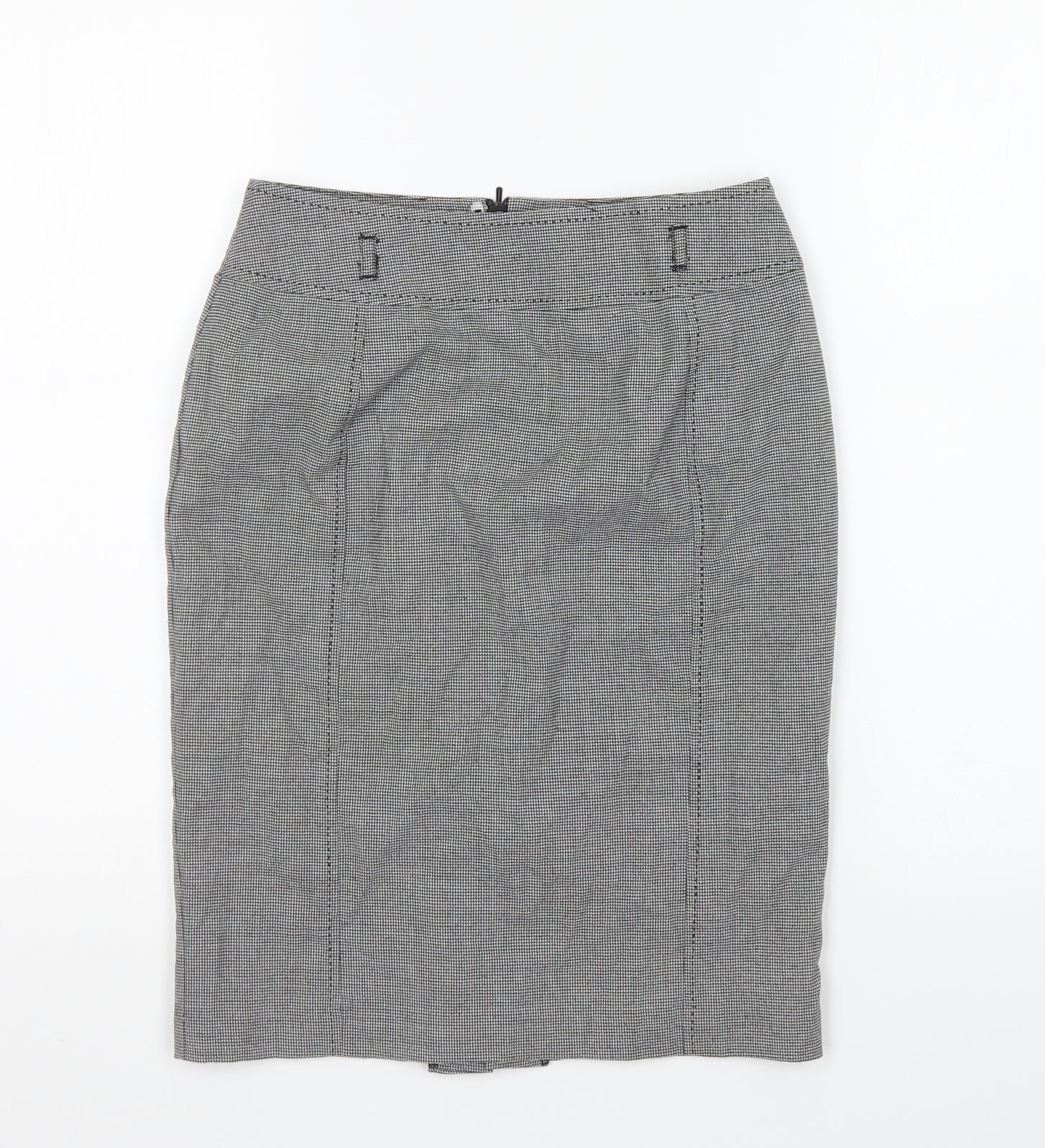 Marks and Spencer Womens Black Geometric Polyester Straight & Pencil Skirt Size 6 - Houndstooth print.