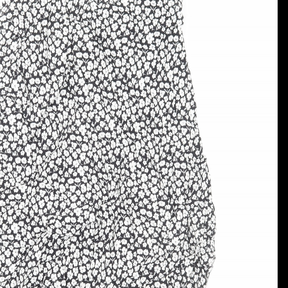 Marks and Spencer Womens Black Geometric Viscose A-Line Skirt Size 12 Zip