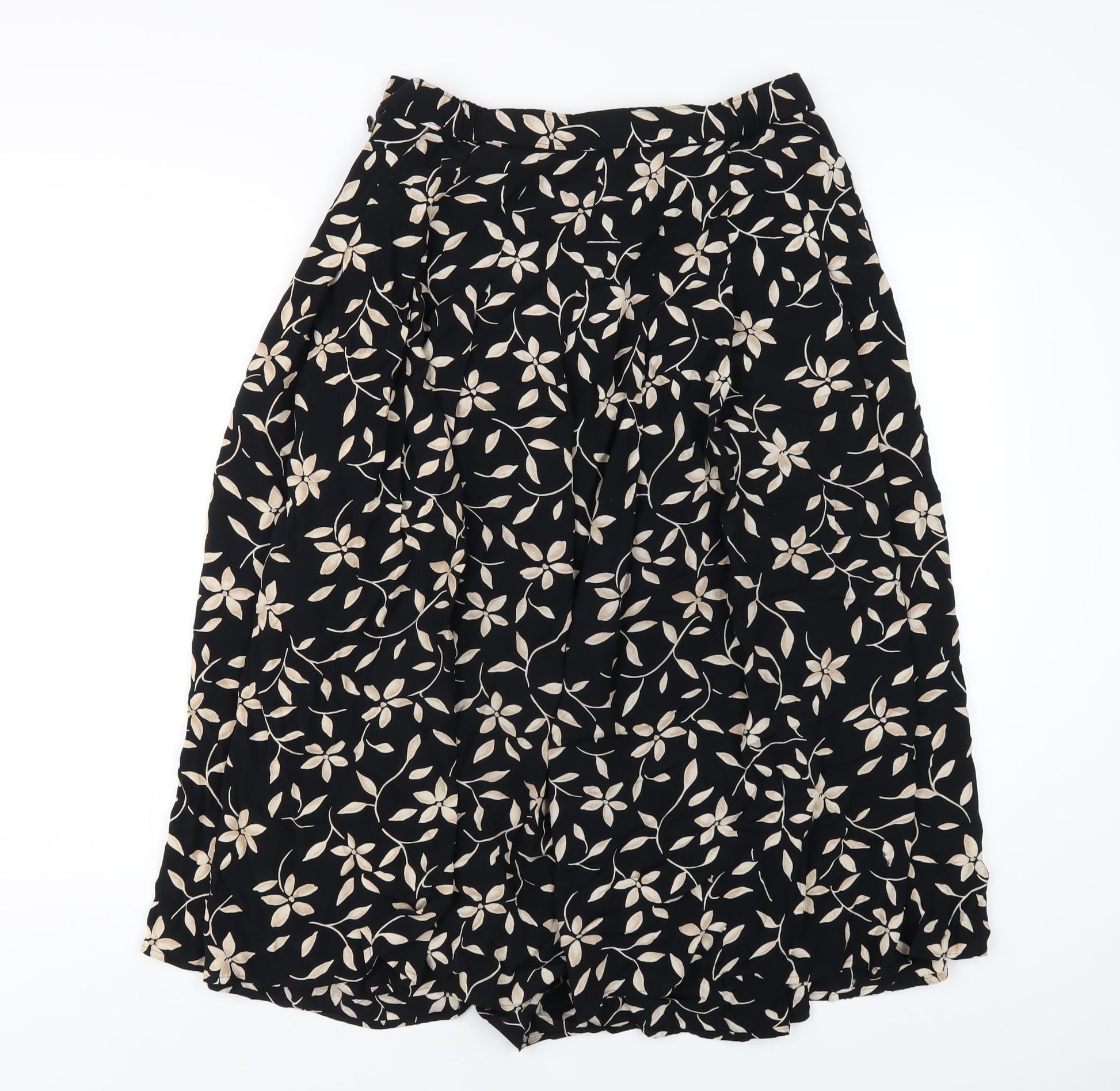 Marks and Spencer Womens Black Geometric Viscose A-Line Skirt Size 14 Zip