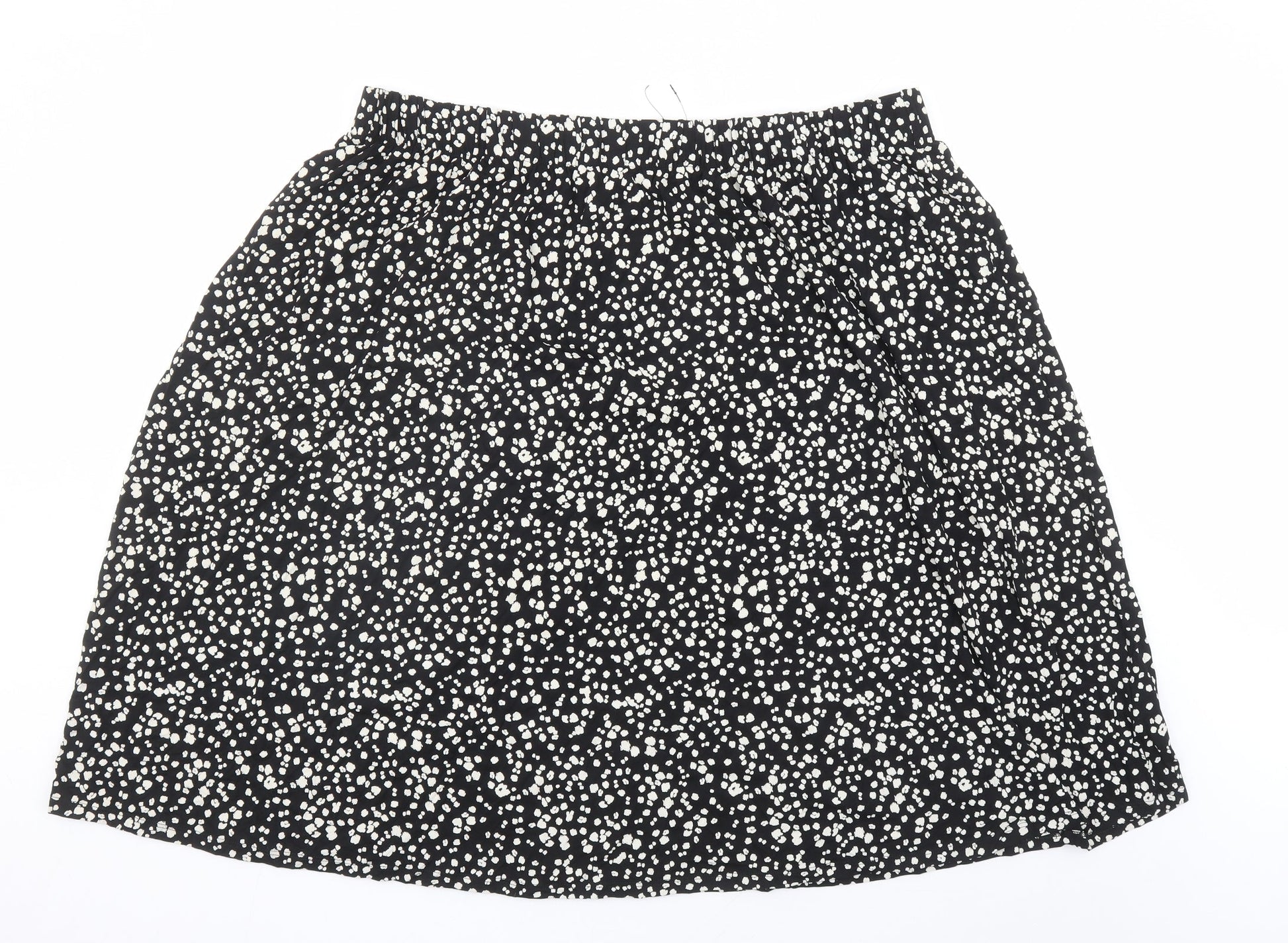 Marks and Spencer Womens Black Geometric Viscose Swing Skirt Size 22 - Elasticated Waist