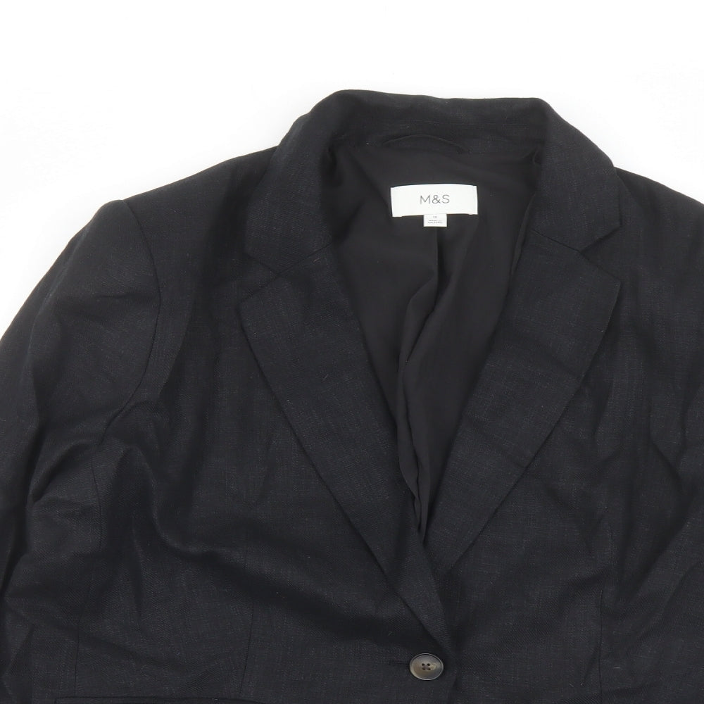 Marks and Spencer Womens Black Herringbone Polyester Jacket Blazer Size 8