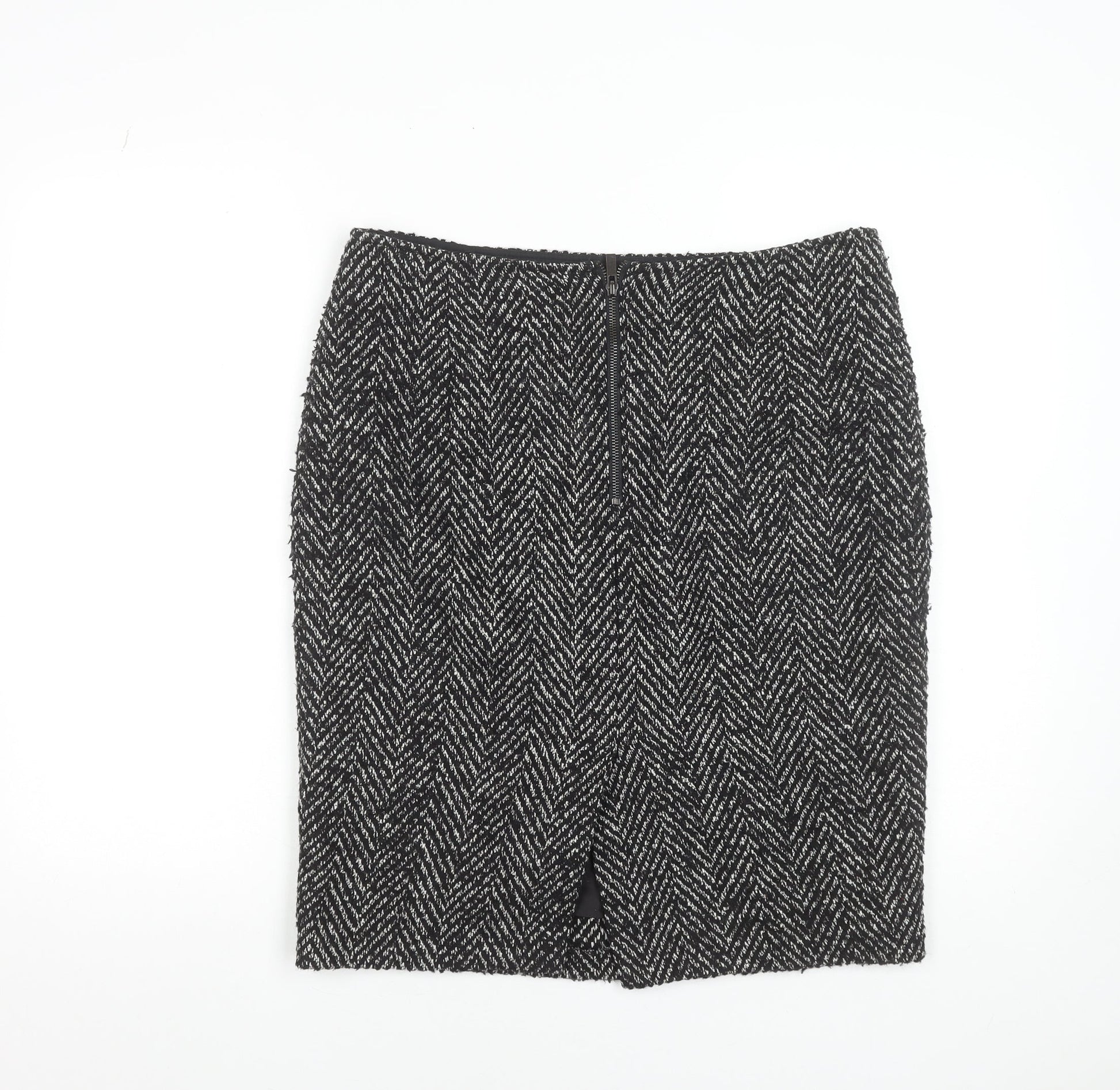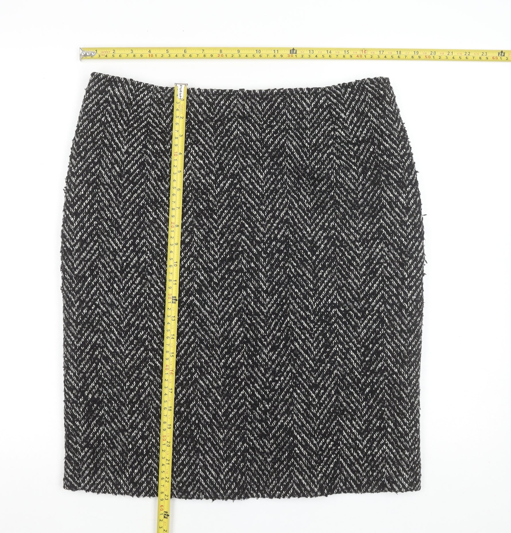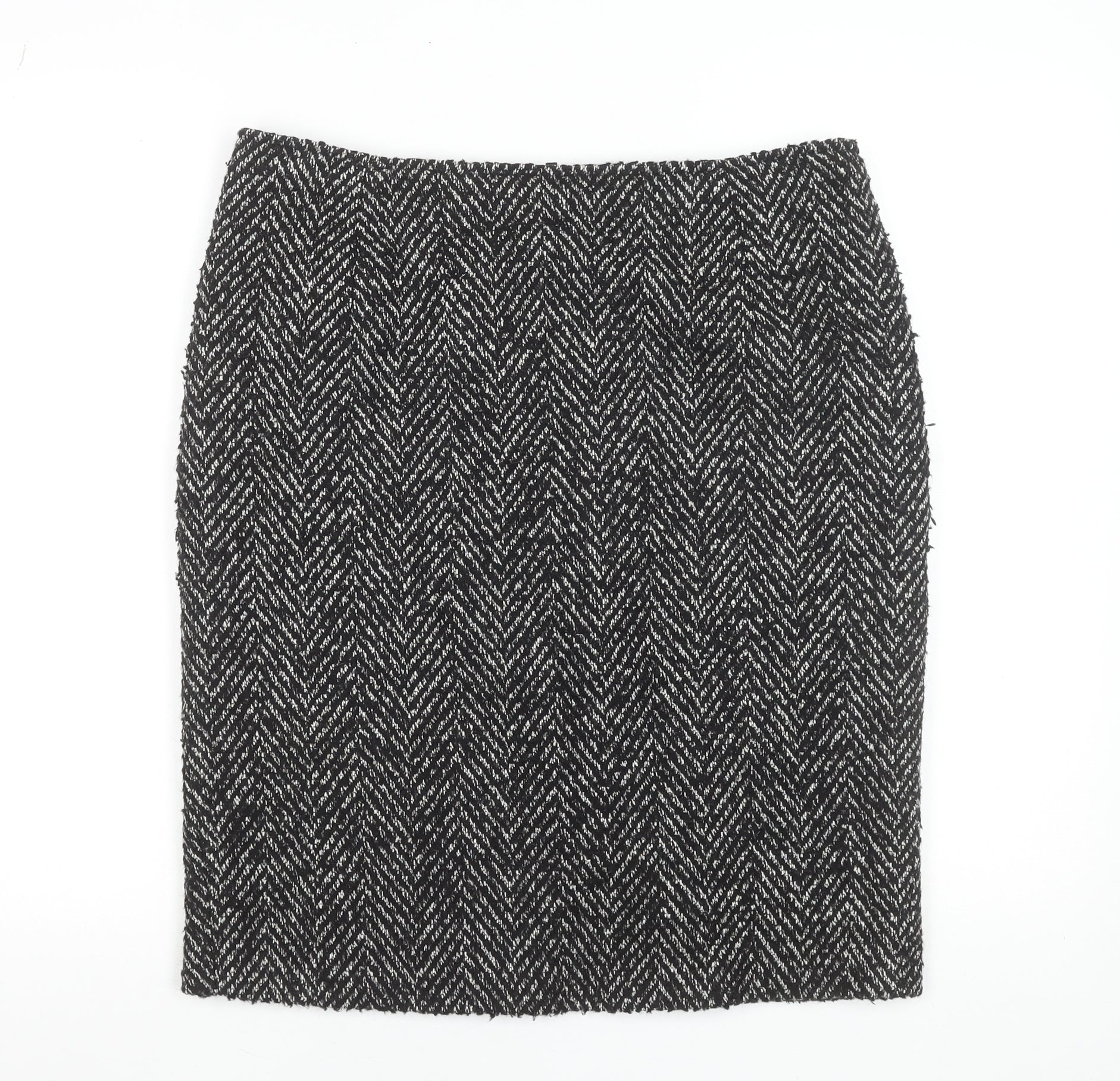 Marks and Spencer Women's Black Herringbone Wool Pencil Skirt Size 14