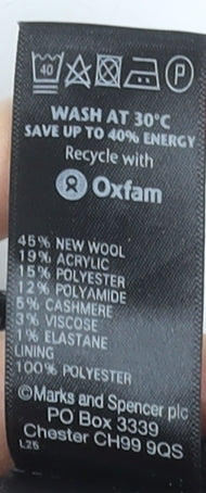 - Material Breakdown: 45% Wool 19% Acrylic 15% Polyester 12% Polyamide 5% Cashmere 3% Viscose 1% Elastane