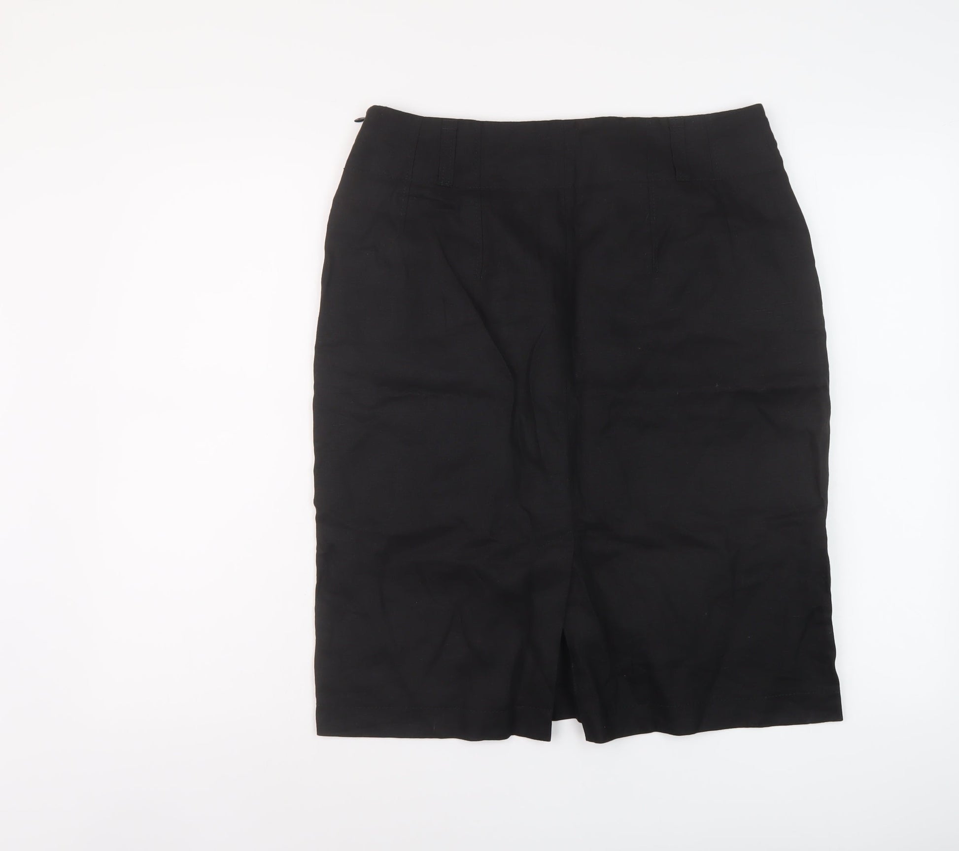 Marks and Spencer Womens Black Linen A-Line Skirt Size 12 Zip