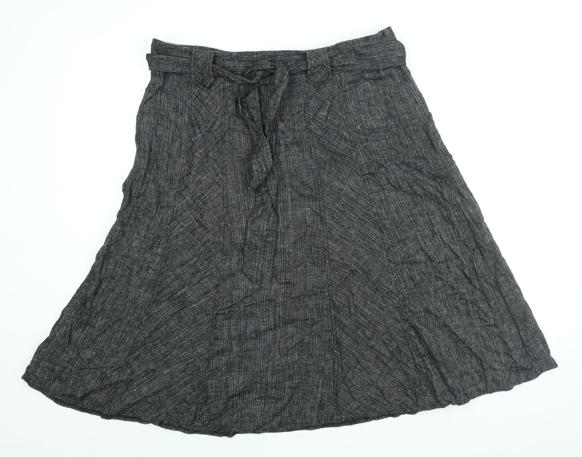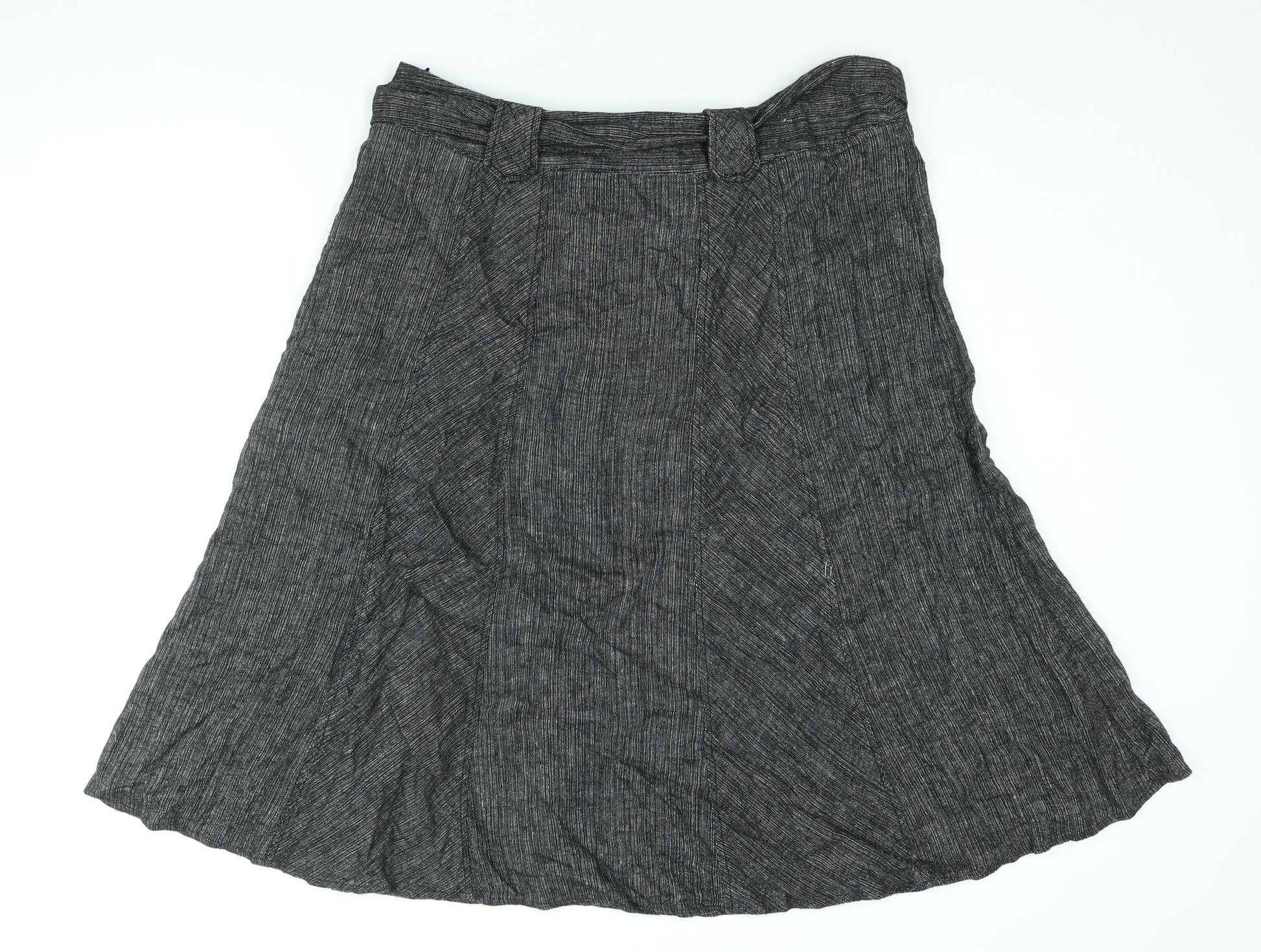 Marks and Spencer Womens Black Linen Flare Skirt Size 18 Zip - Belted