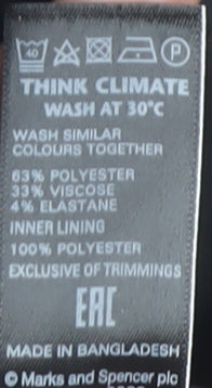 - Material Breakdown: 63% Polyester 33% Viscose 4% Elastane