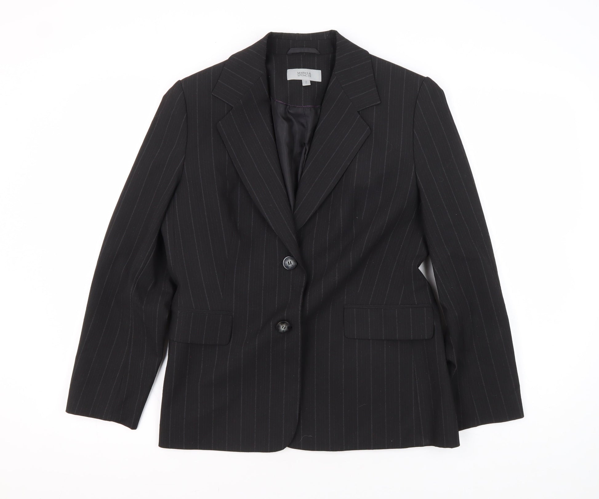 Marks and Spencer Women's Black Pinstripe Suit Jacket Size 14