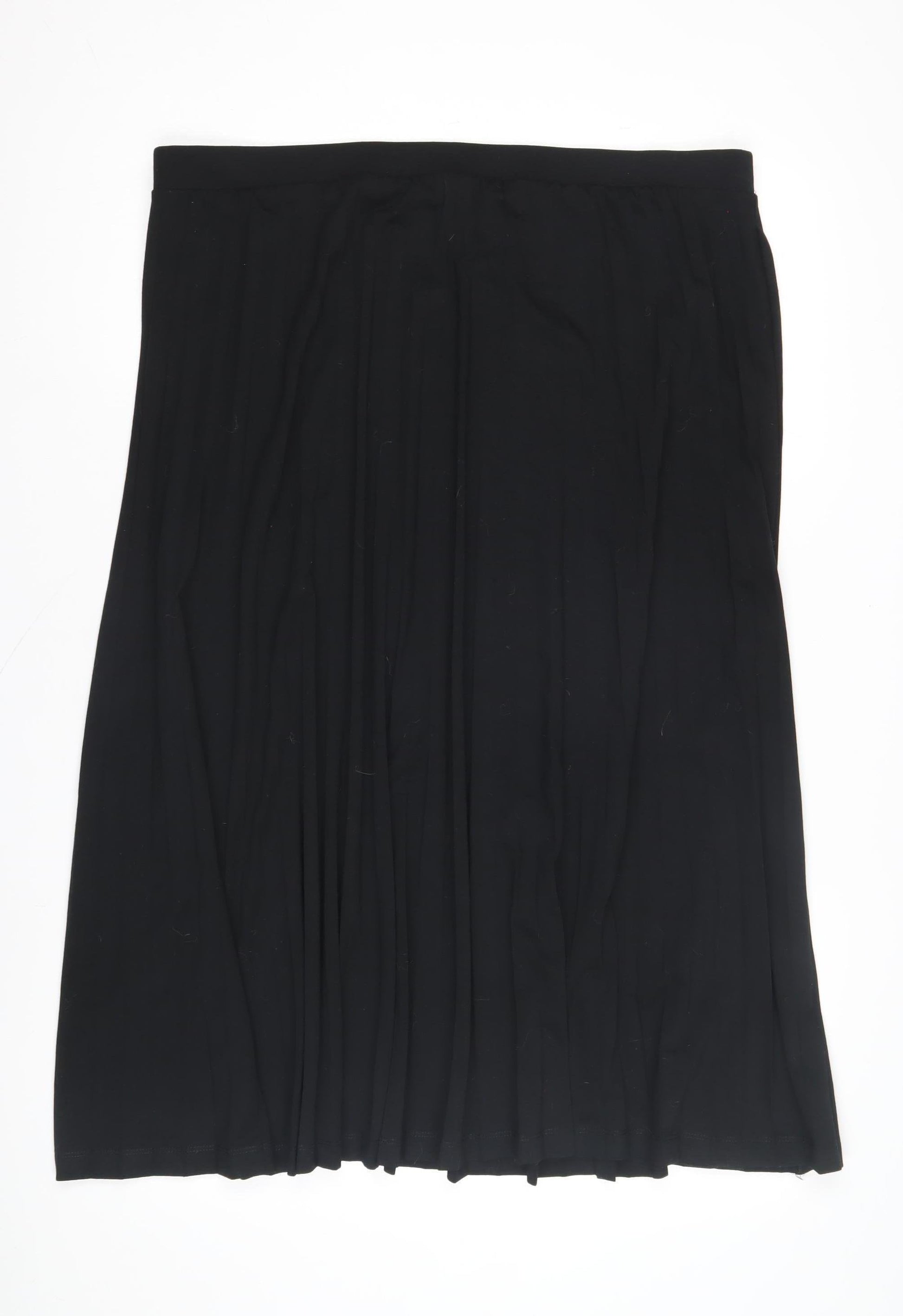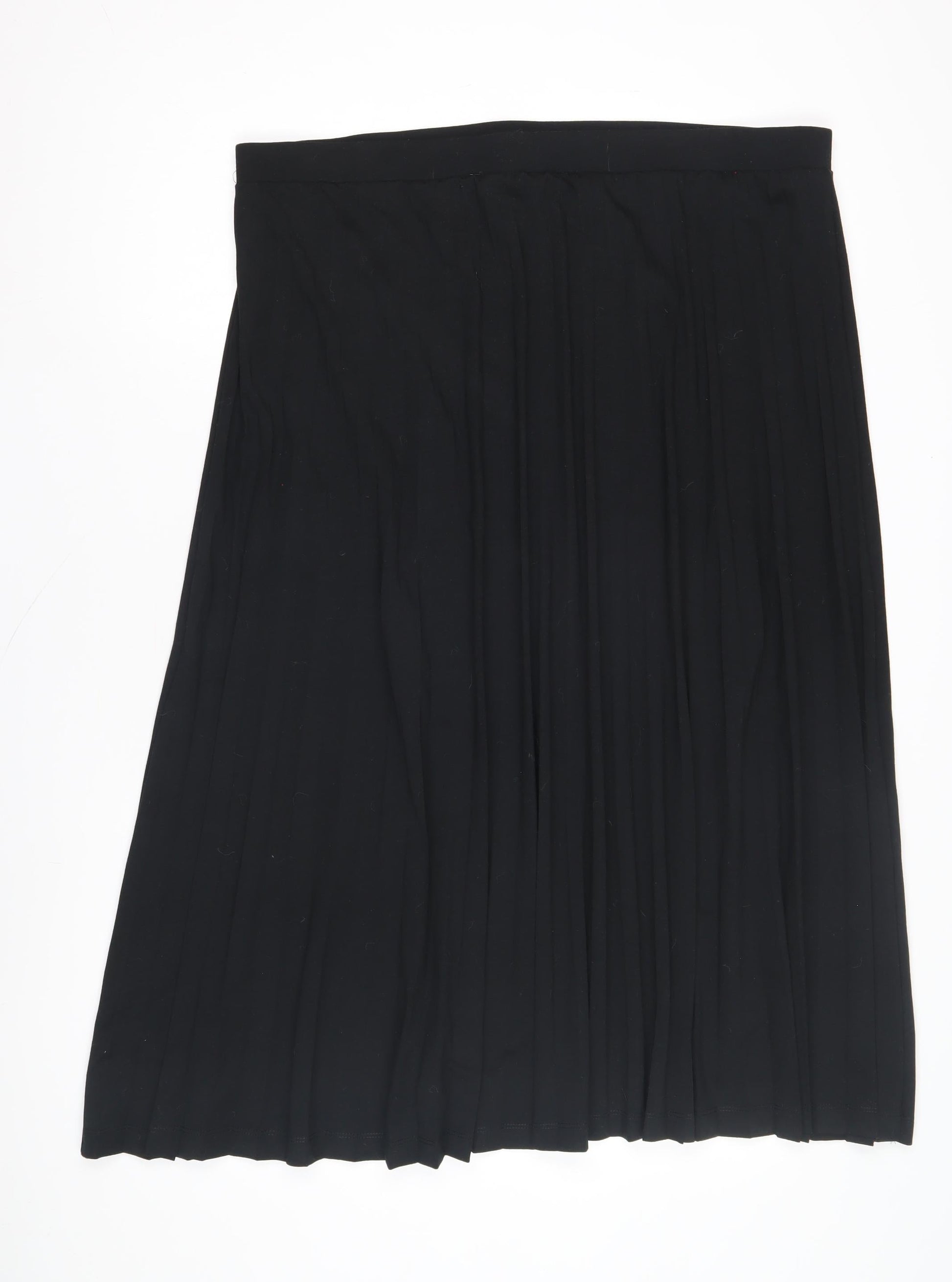 Marks and Spencer Women's Black Pleated Midi Skirt - Size 16