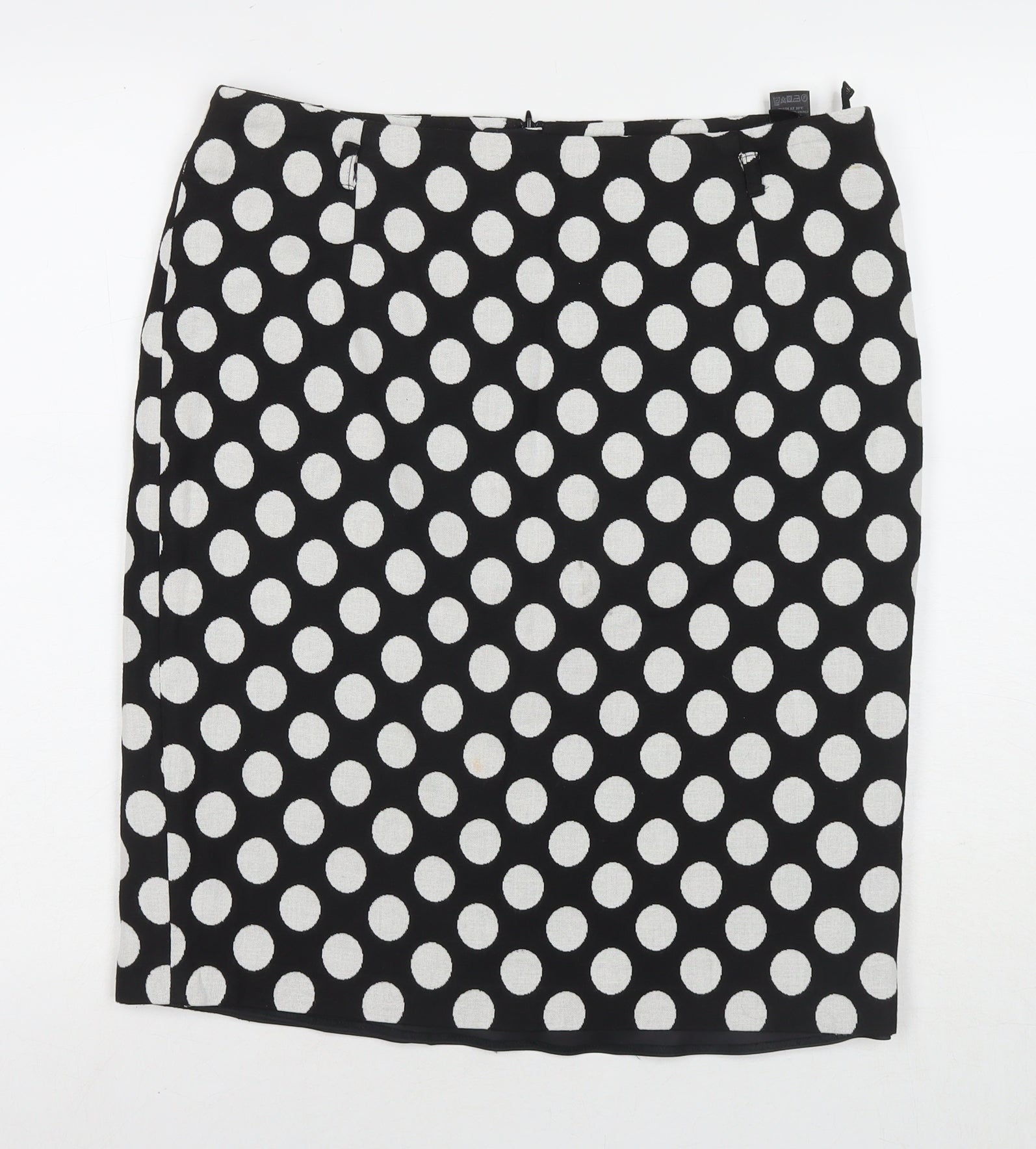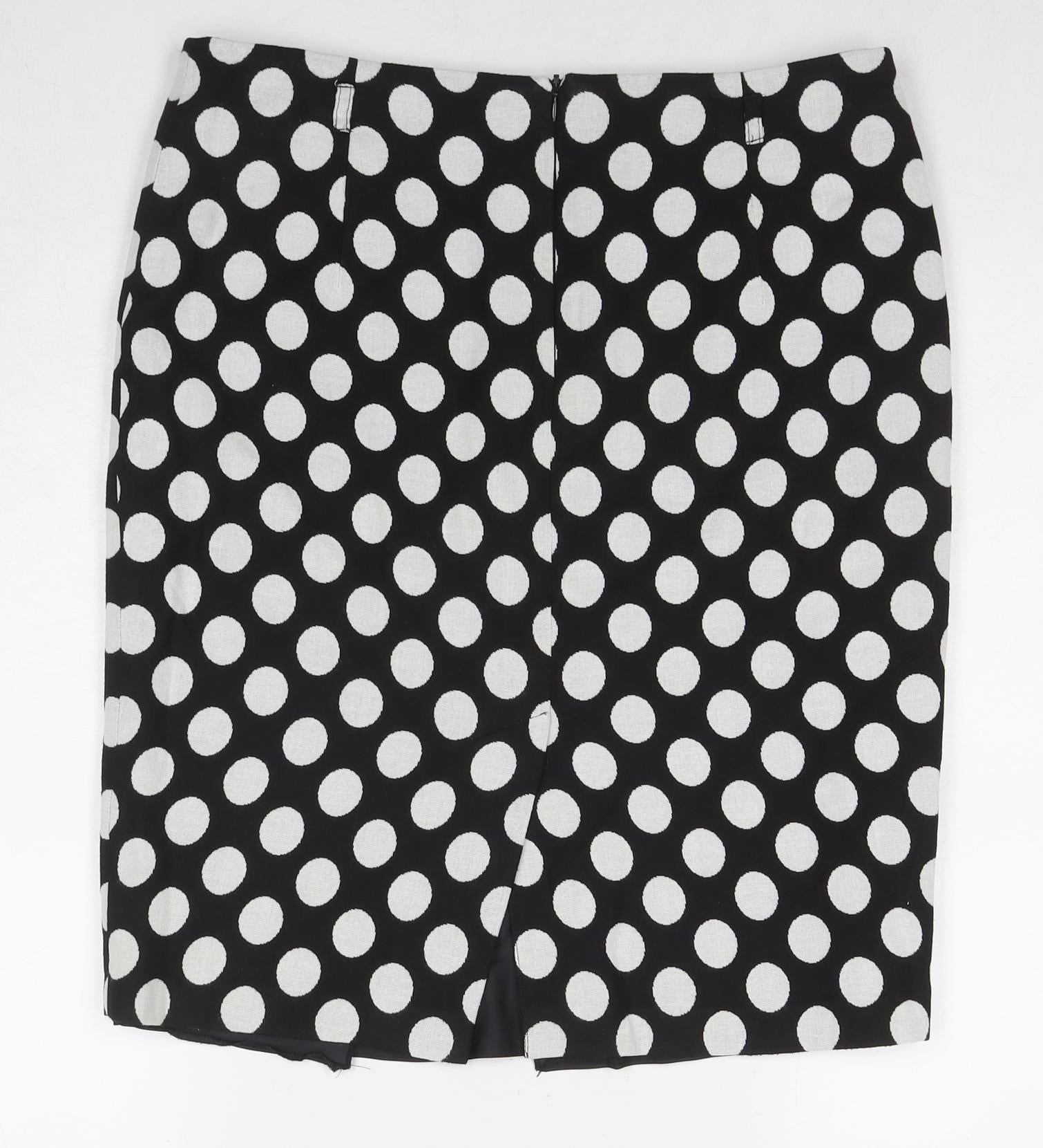 Marks and Spencer Womens Black Polka Dot Cotton A-Line Skirt Size 12 Zip