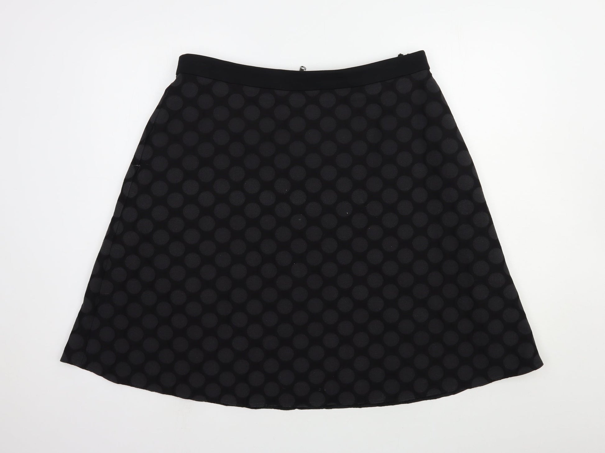 Marks and Spencer Womens Black Polka Dot Cotton A-Line Skirt Size 14 Zip
