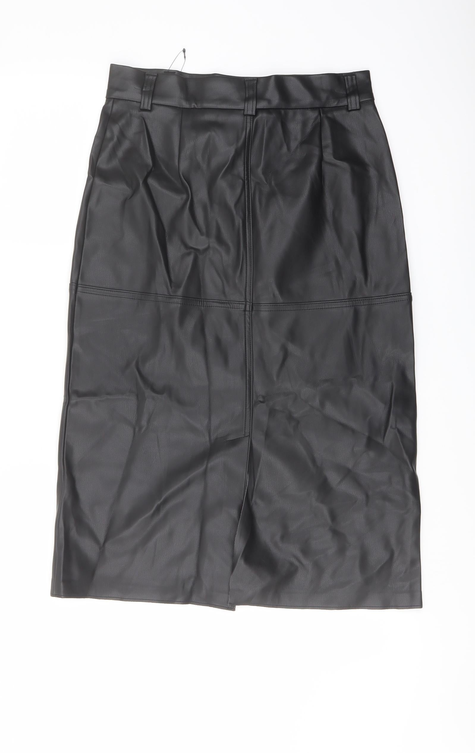 Marks and Spencer Womens Black Polyester A-Line Skirt Size 10 Snap