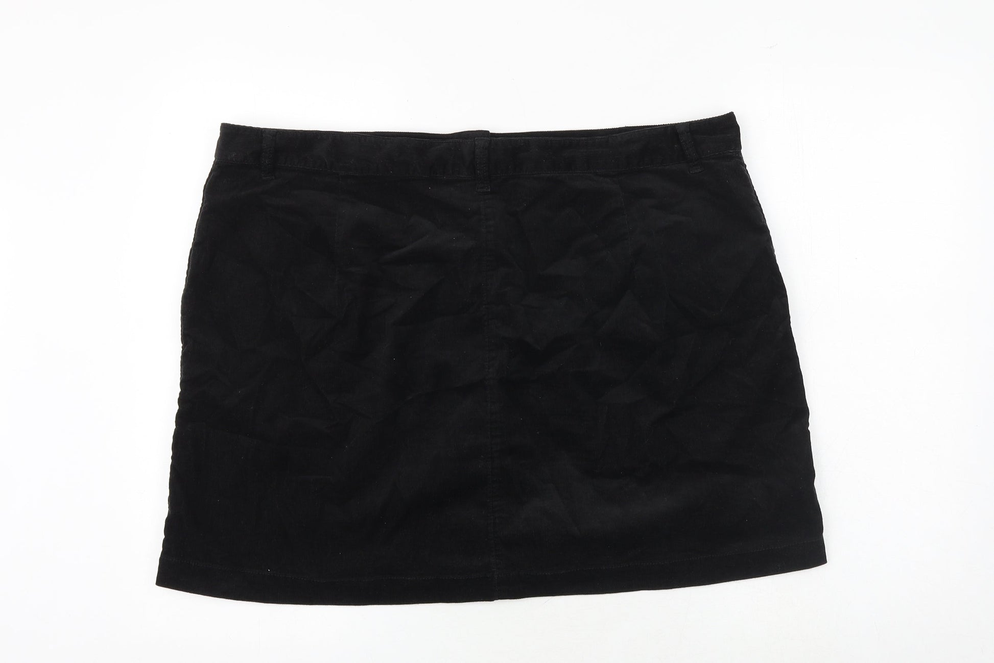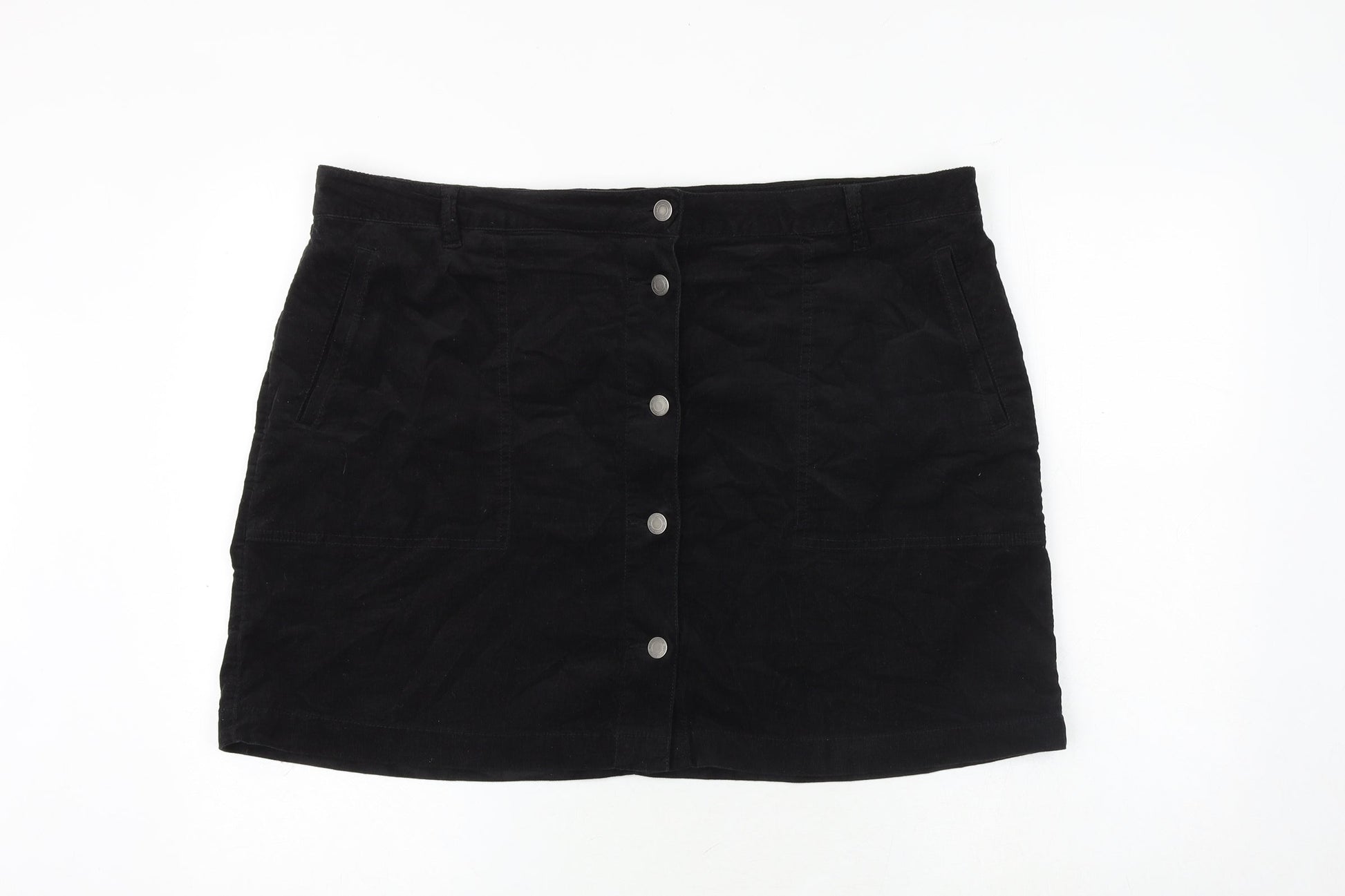 Marks and Spencer Womens Black Polyester A-Line Skirt Size 42 in Button