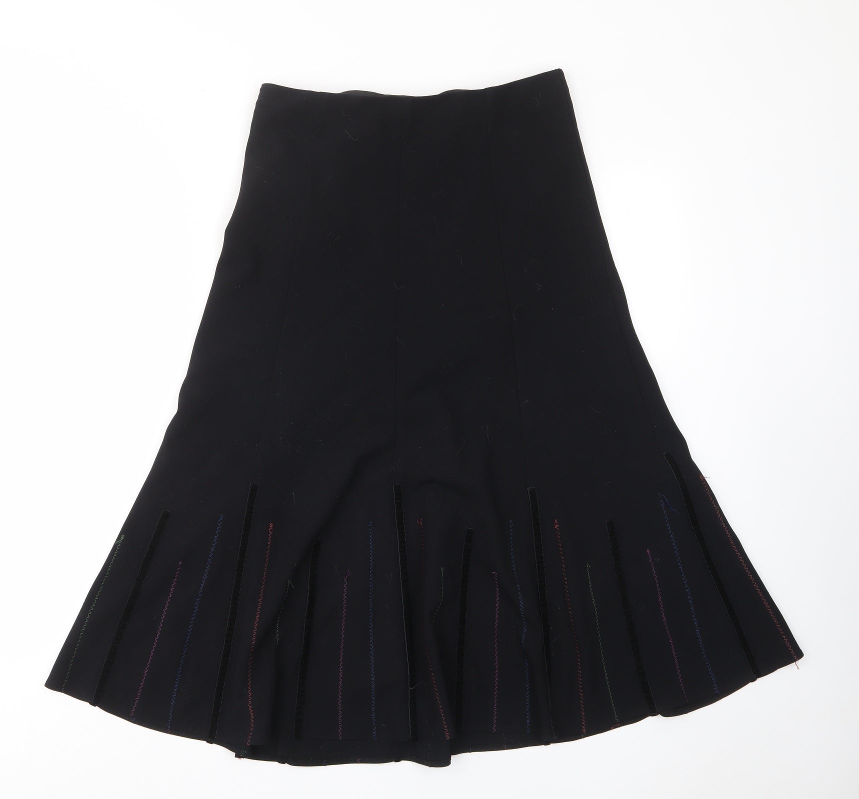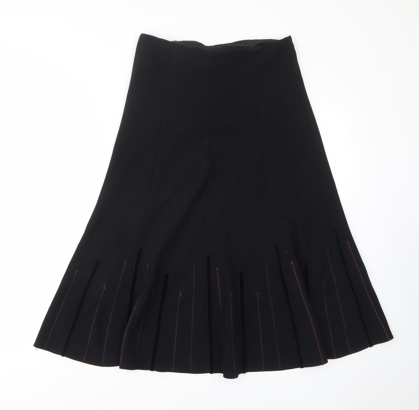 Marks and Spencer Womens Black Polyester A-Line Skirt Size 8 Zip - Layered, Embroided
