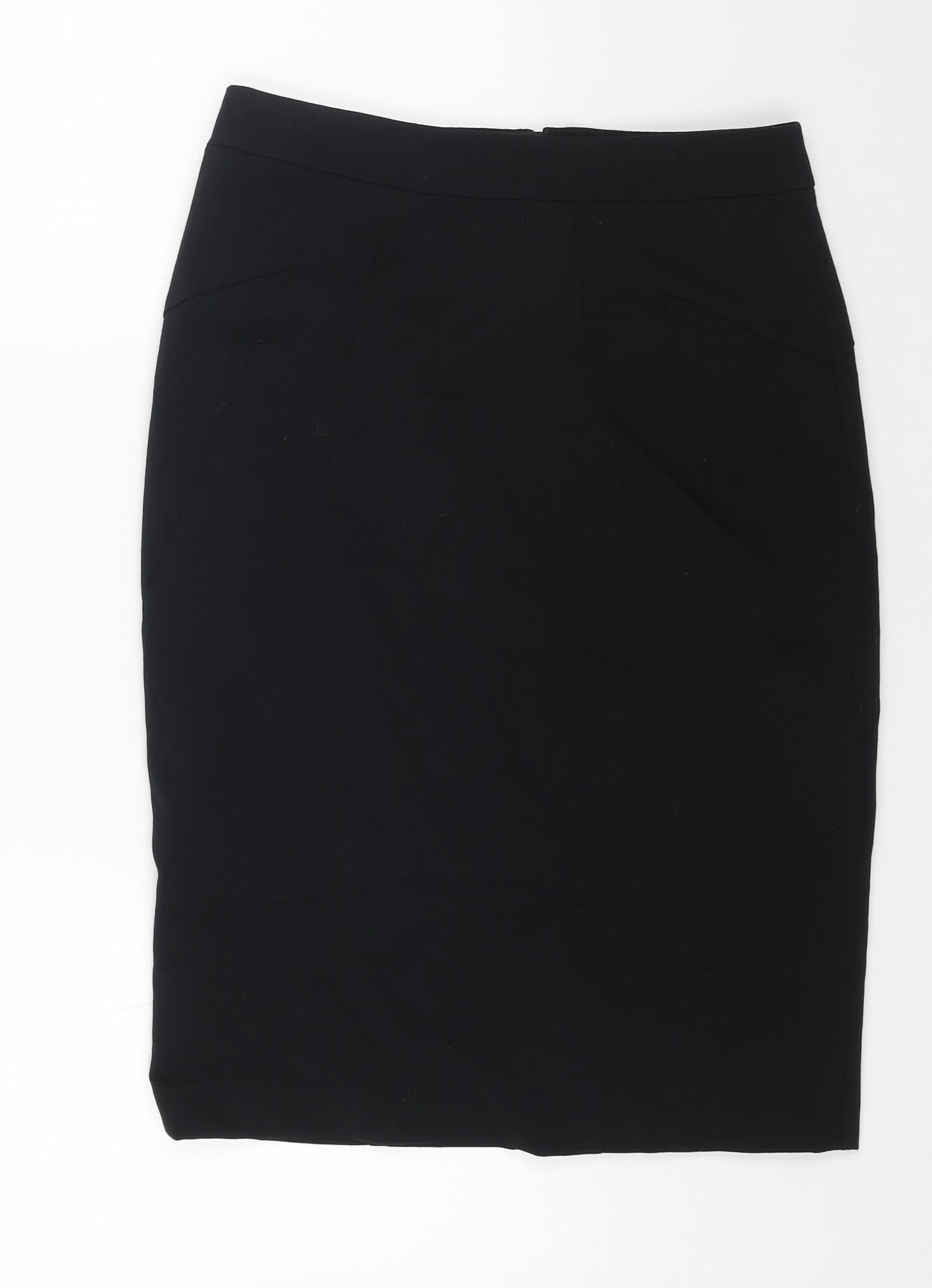 Marks and Spencer Womens Black Polyester Straight & Pencil Skirt Size 8 Zip