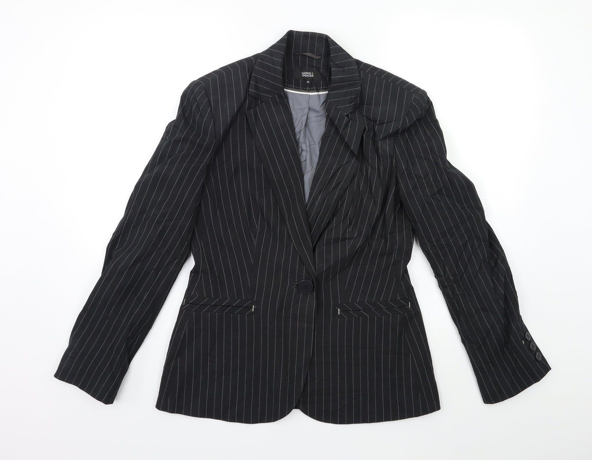 Marks and Spencer Womens Black Striped Jacket Blazer Size 12
