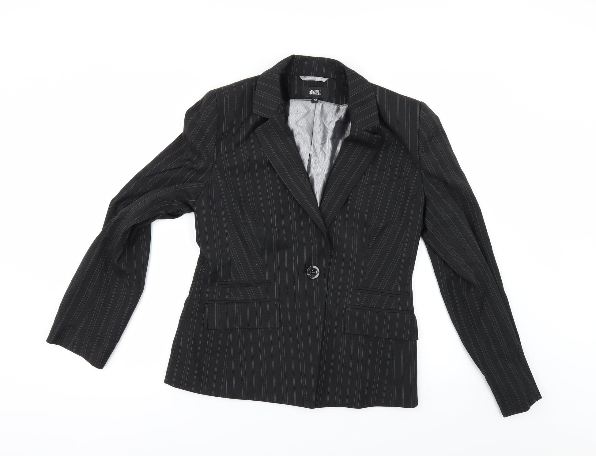 Marks and Spencer Womens Black Striped Jacket Suit Jacket Size 12