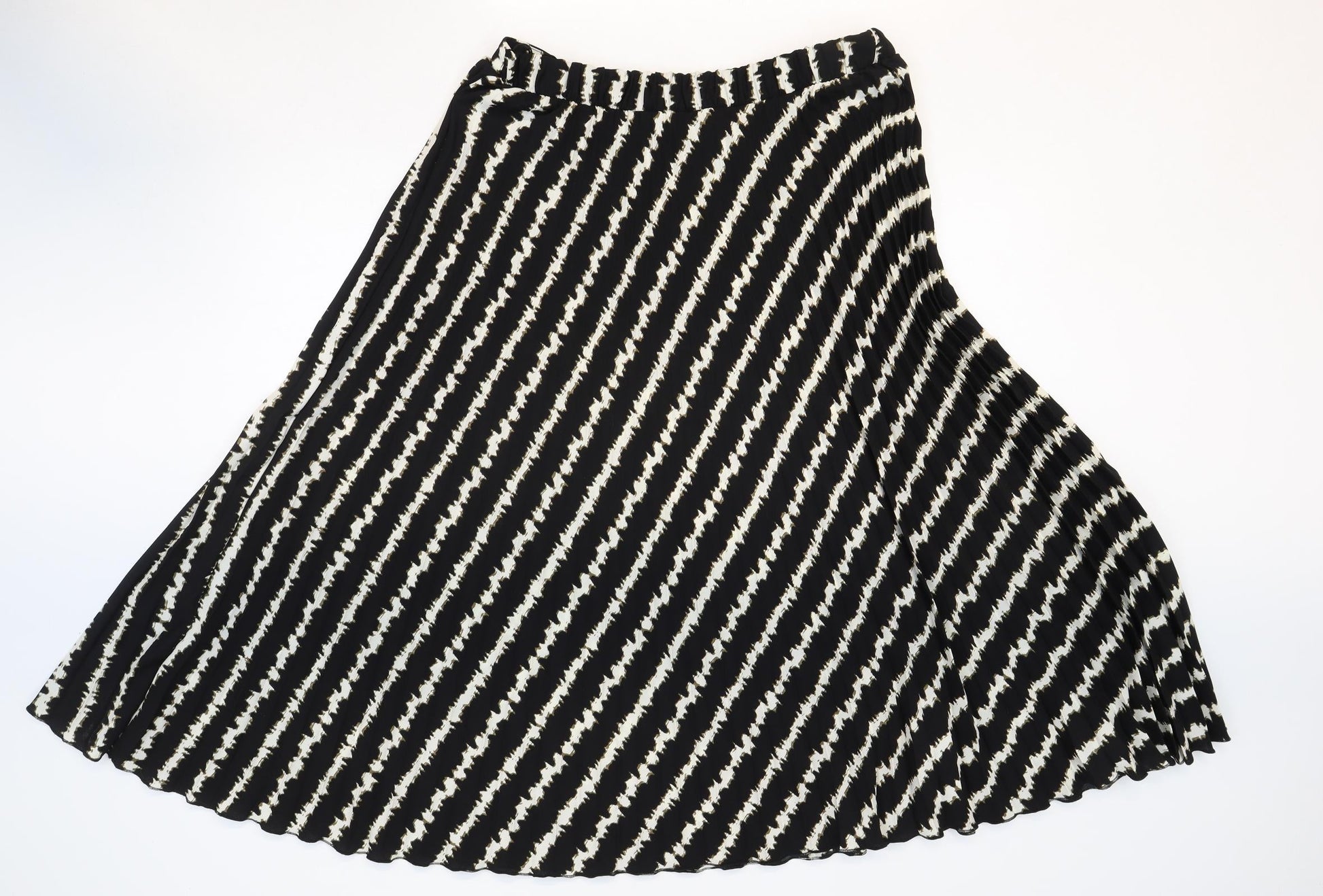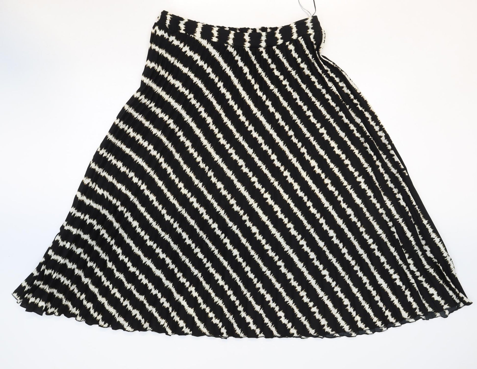 Marks and Spencer Womens Black Striped Polyester Swing Skirt Size 14