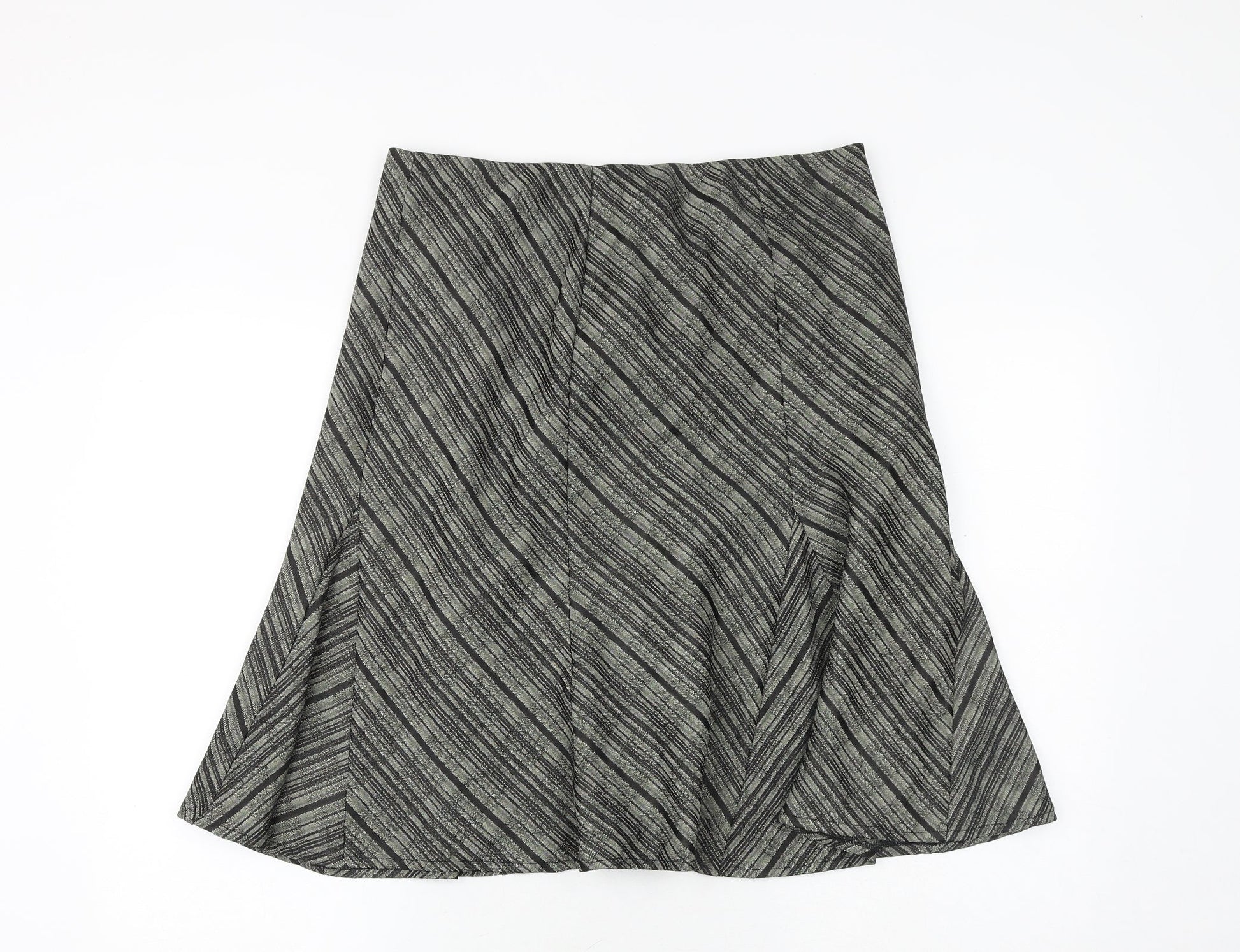 Marks and Spencer Womens Black Striped Polyester Swing Skirt Size 14
