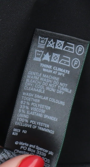 - Material Breakdown: 62% Polyester 33% Viscose 5% Elastane