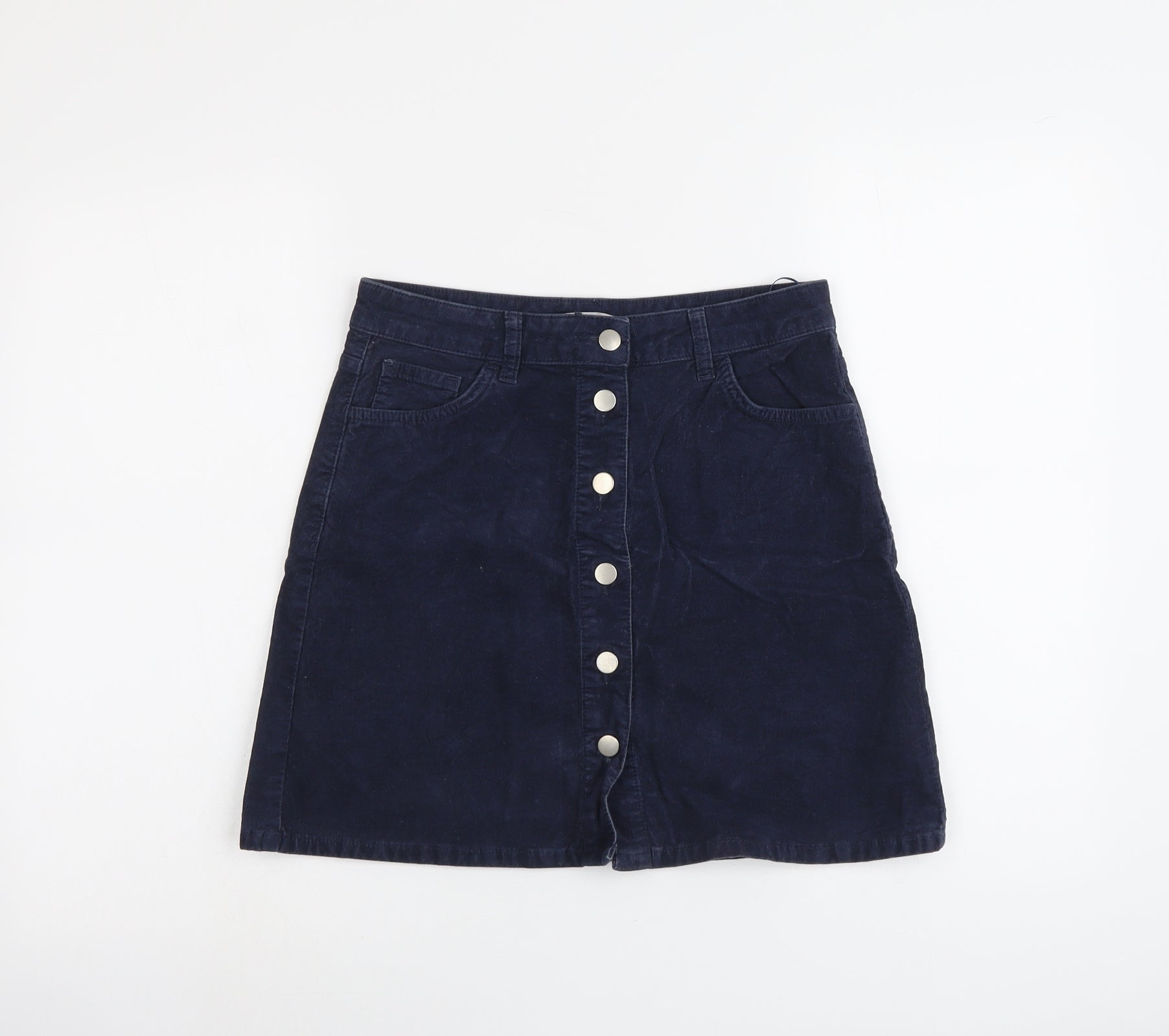 Marks and Spencer Womens Blue Cotton A-Line Skirt Size 10 Button