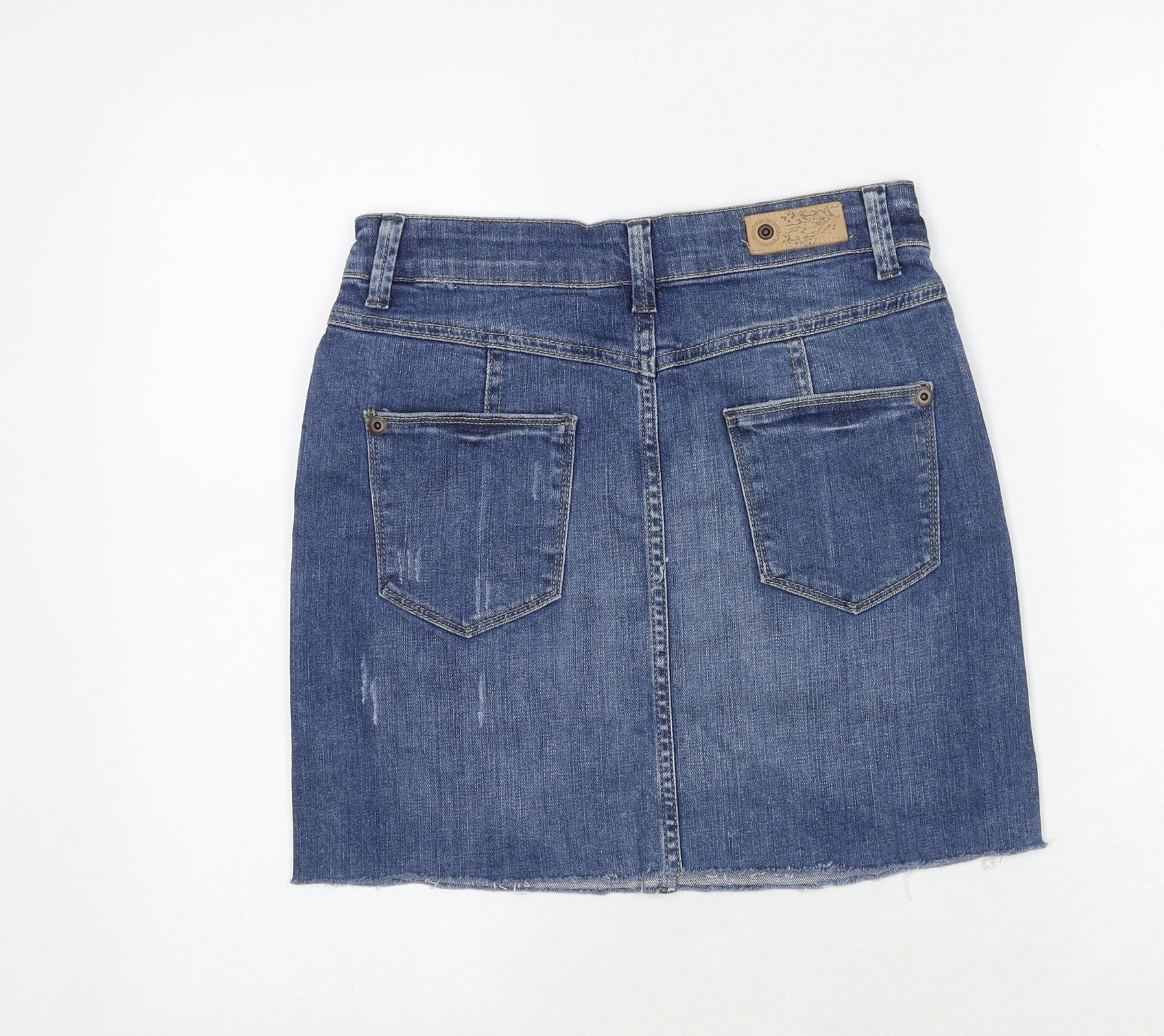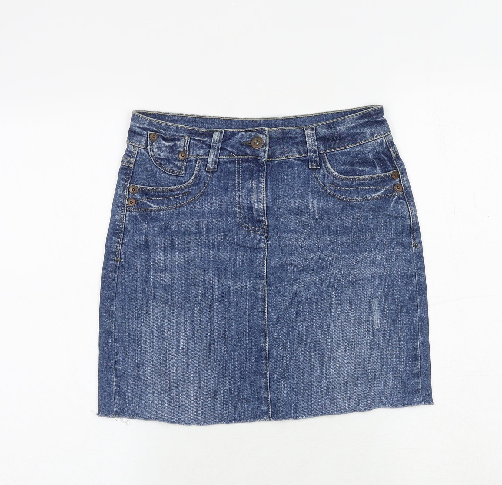 Marks and Spencer Womens Blue Cotton A-Line Skirt Size 6 Zip