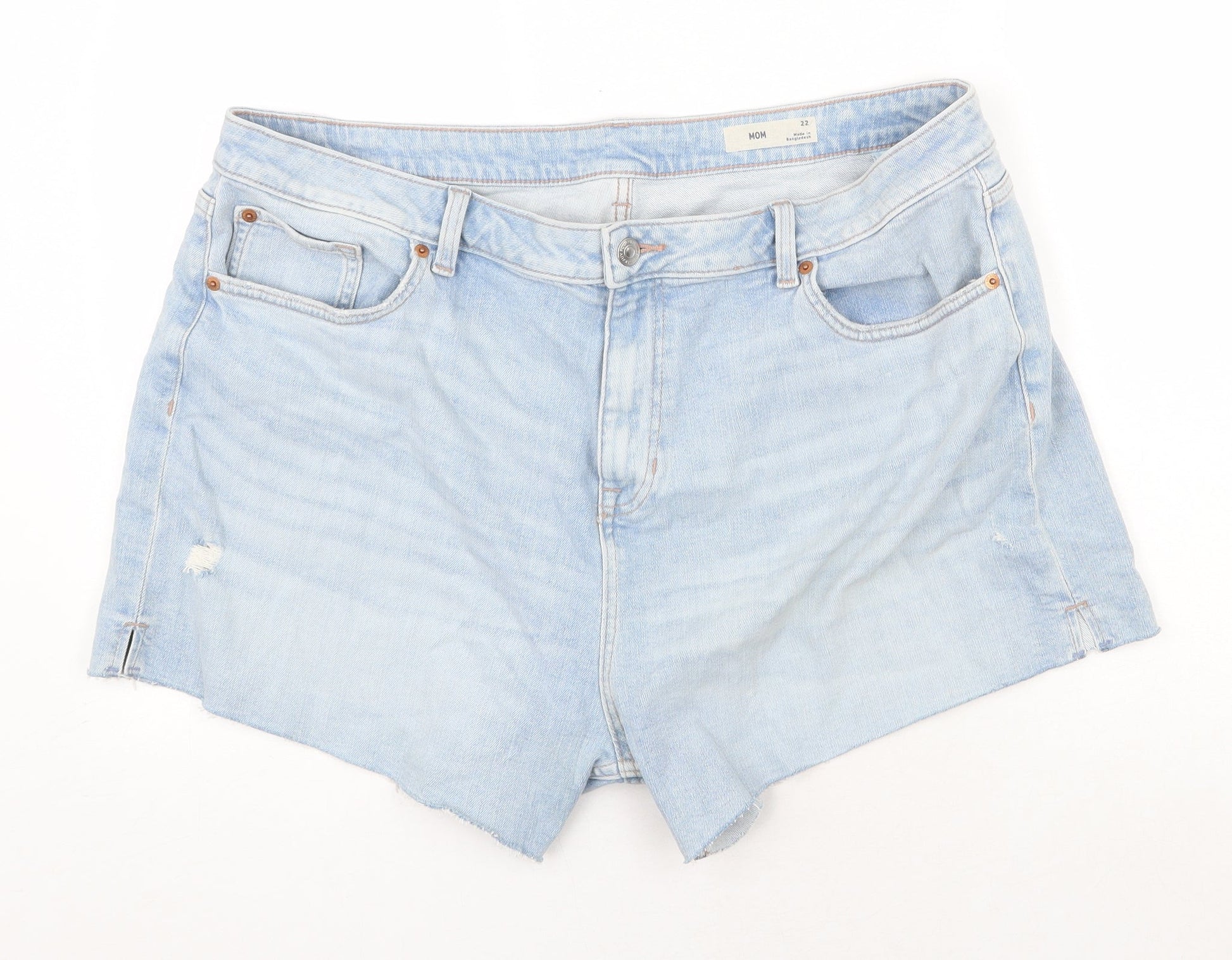 Marks and Spencer Womens Blue Cotton Cut-Off Shorts Size 22 Regular Zip - Distressed
