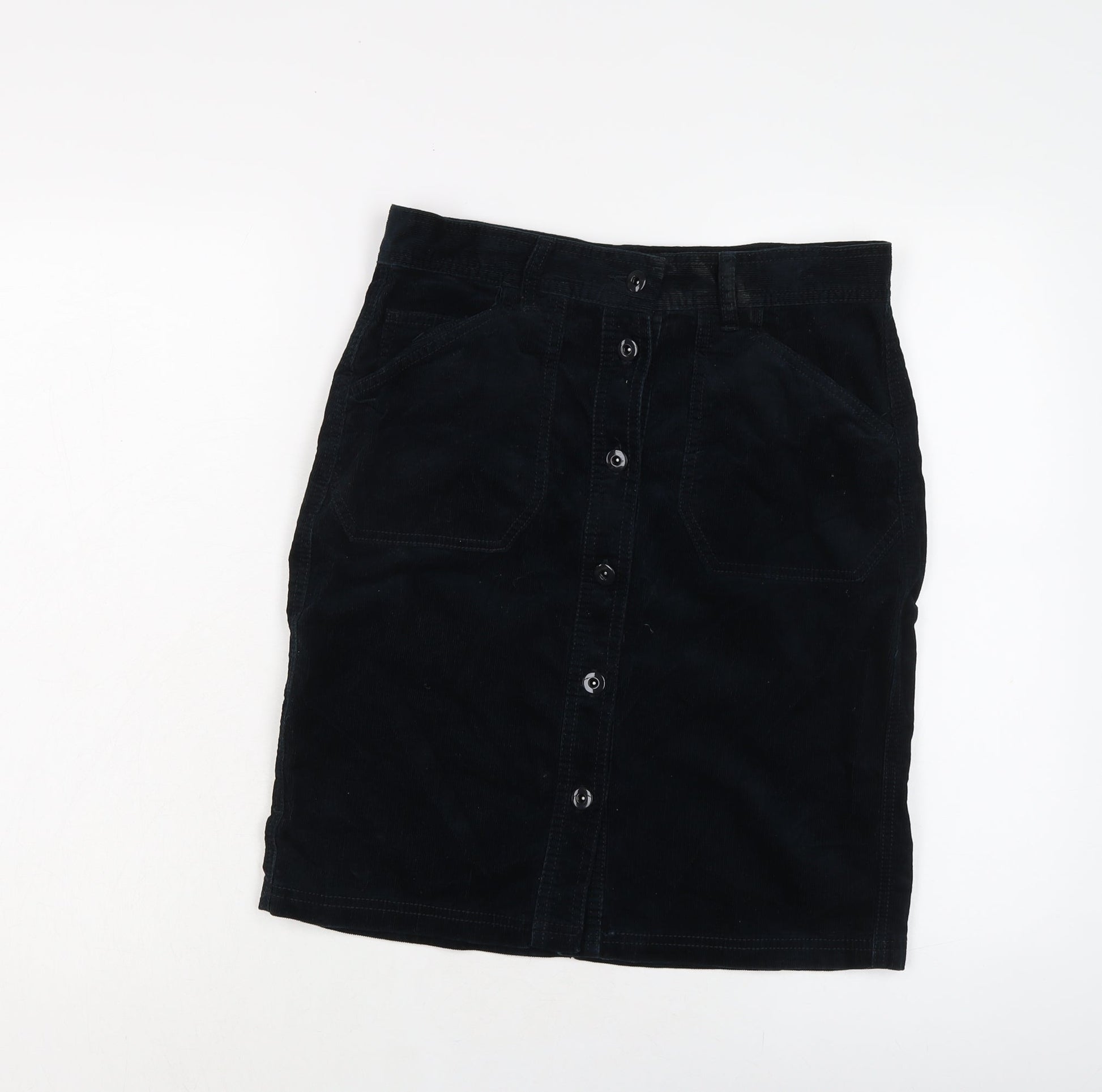 Marks and Spencer Womens Blue Cotton Mini Skirt Size 8 Button
