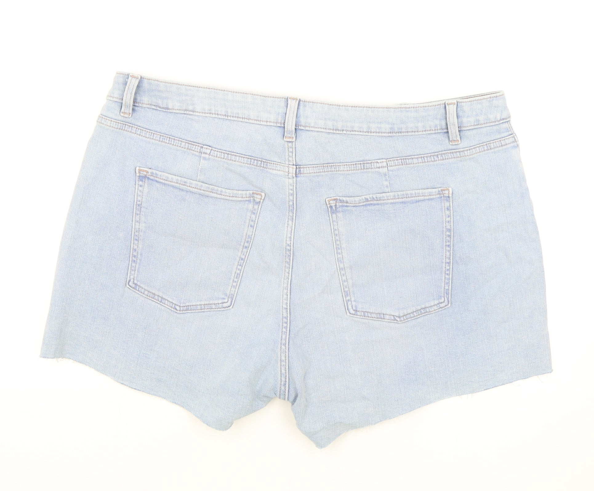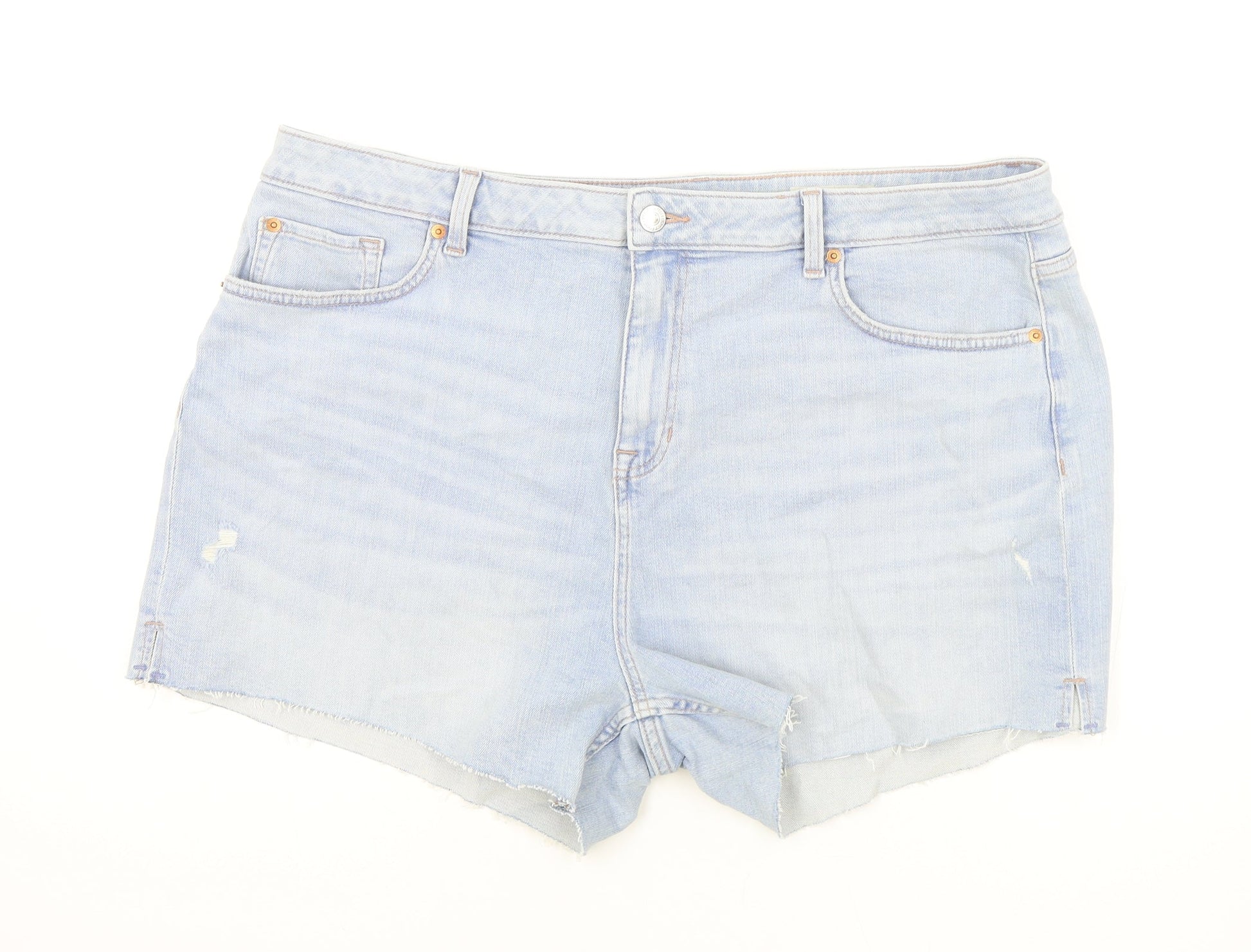 Marks and Spencer Womens Blue Cotton Mom Shorts Size 22 Regular Zip - Inside leg less than 3 inches.